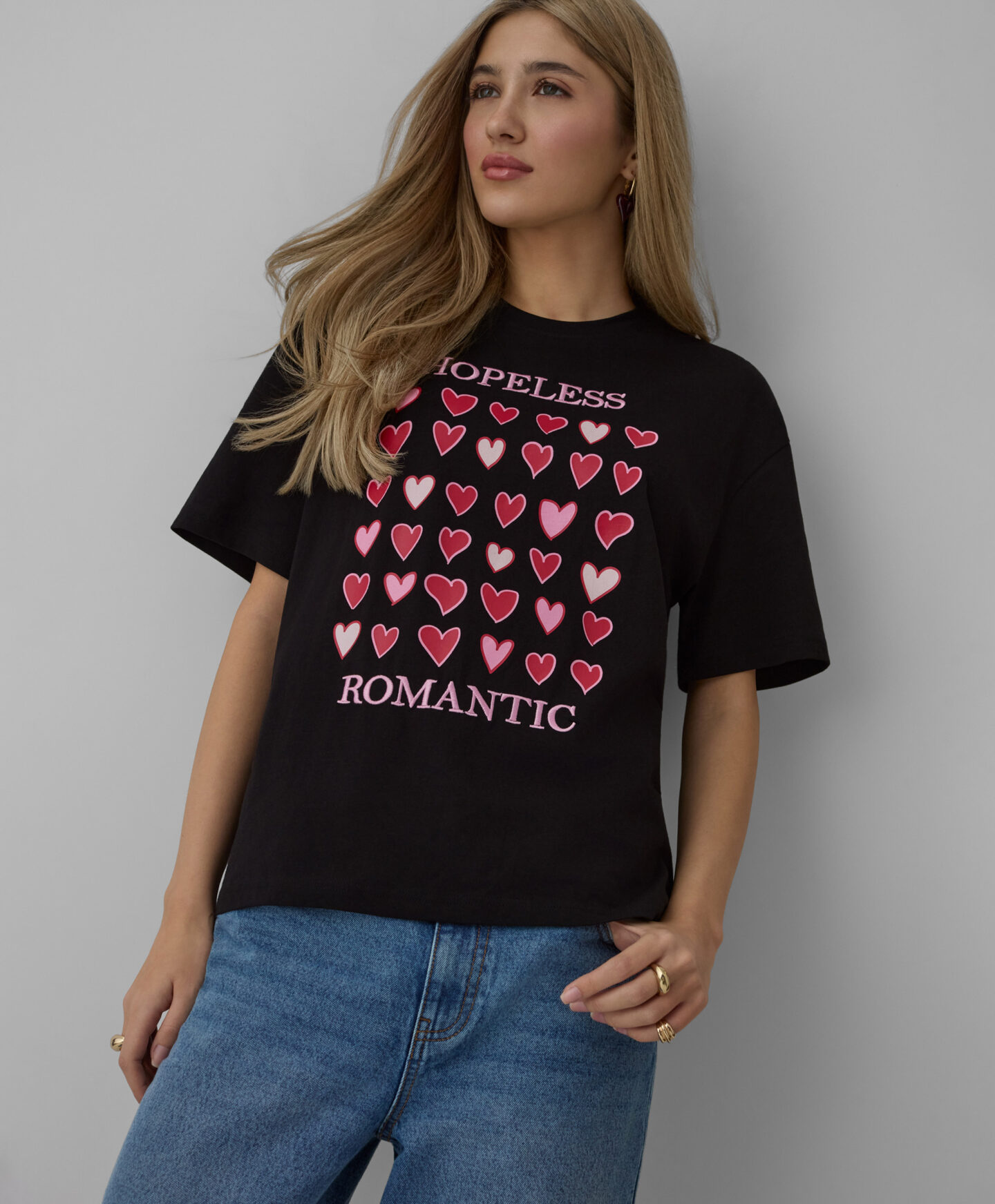 Majica za ženske s srčastim vzorcem 100% bombaž