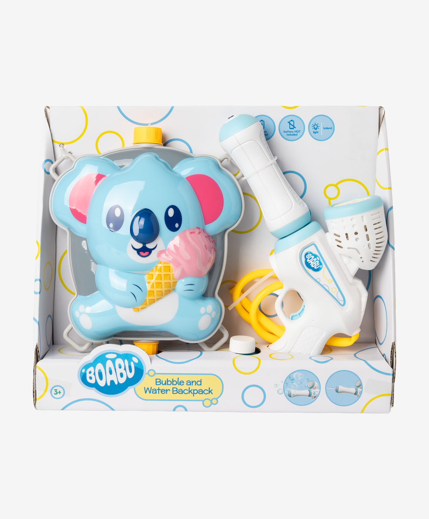 Nahrbtnik za mehurčke in vodo v obliki koale zagotavlja raznoliko in neskončno zabavo! Vodna pištola je enostavna za uporabo, varna in učinkovita, rezervoar za vodo pa lahko enostavno napolnite. Nahrbtnik ima nastavljive naramnice, ki jih lahko prilagodite otrokovi višini, zato zagotavlja udobno nošenje med igro. Na izbiro sta dva motiva.