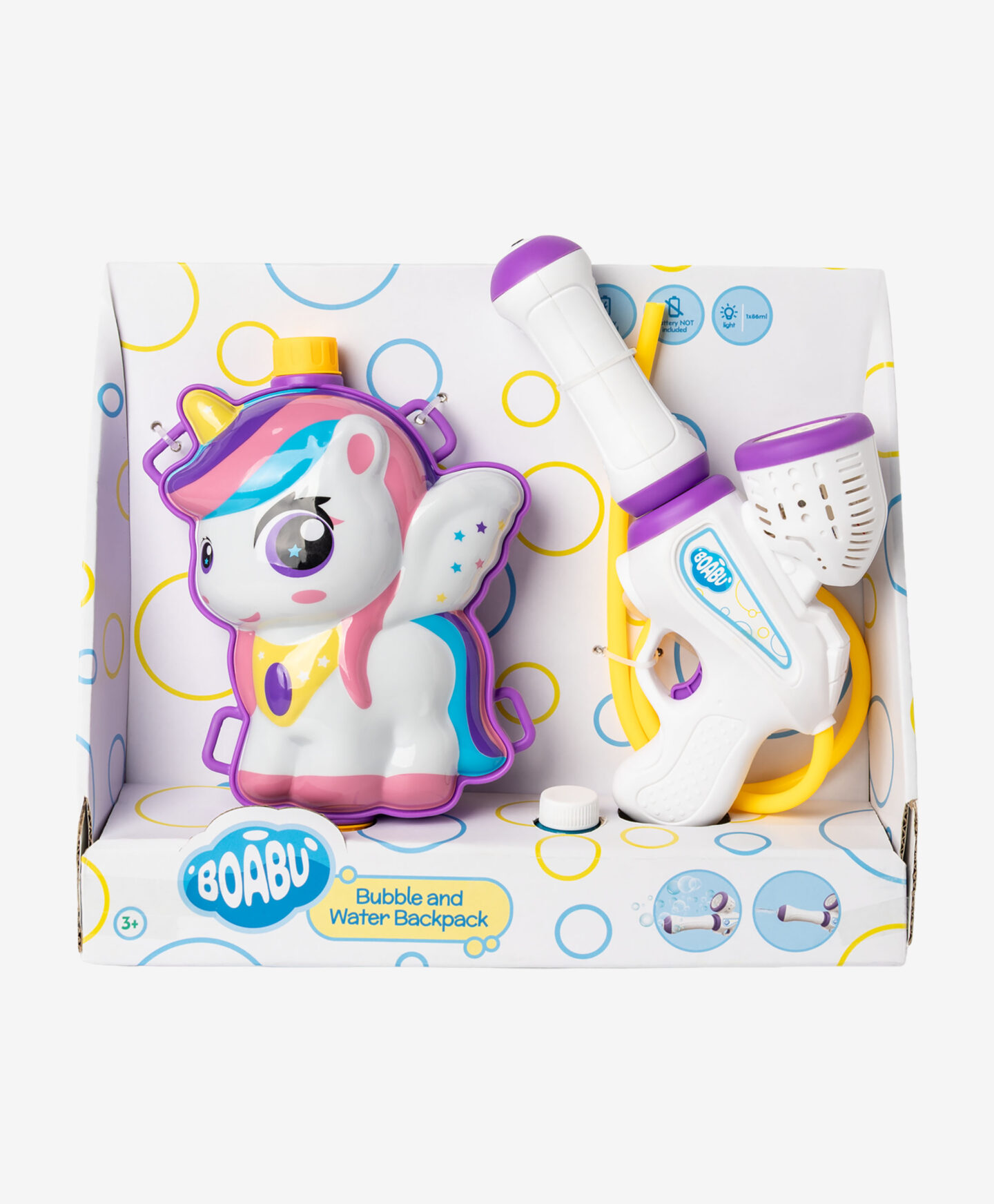 Nahrbtnik za mehurčke in vodo v obliki samoroga zagotavlja raznoliko in neskončno zabavo! Vodna pištola je enostavna za uporabo, varna in učinkovita, rezervoar za vodo pa lahko enostavno napolnite. Nahrbtnik ima nastavljive naramnice, ki jih lahko prilagodite otrokovi višini, zato zagotavlja udobno nošenje med igro. Na izbiro sta dva motiva.
