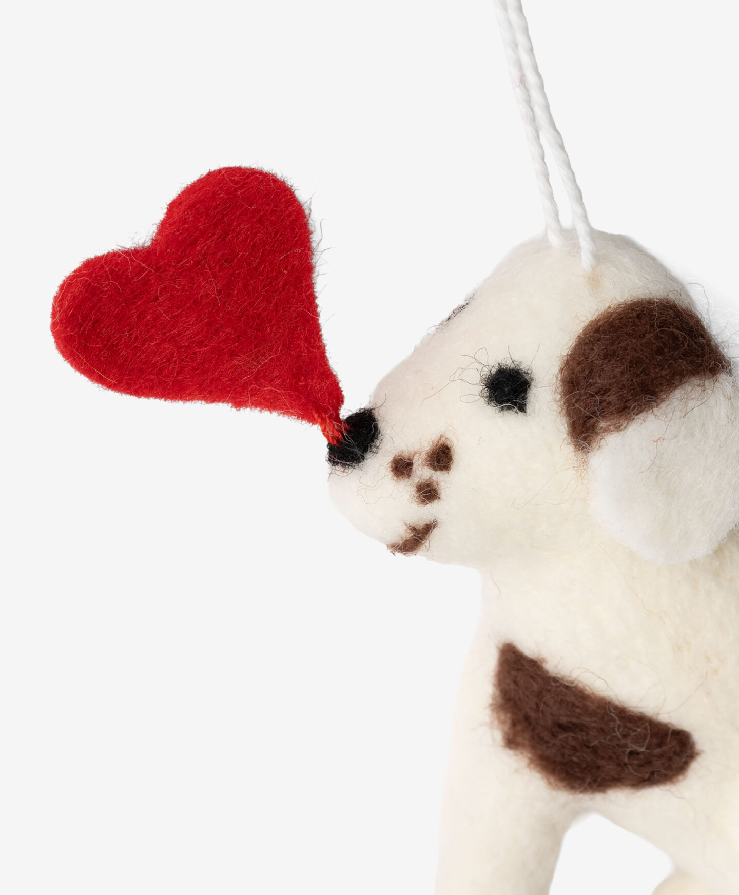 Obesek iz filca z motivom kužka, ki drži srce, je očarljiva dekoracija za valentinovo. Zaradi kompaktne velikosti in mehke teksture je popoln za obešanje na ključe, torbe, nahrbtnike ali peresnice. V skupne trenutke vnaša kanček barvitosti in pomaga izražati čustva. Na voljo sta dve različici.