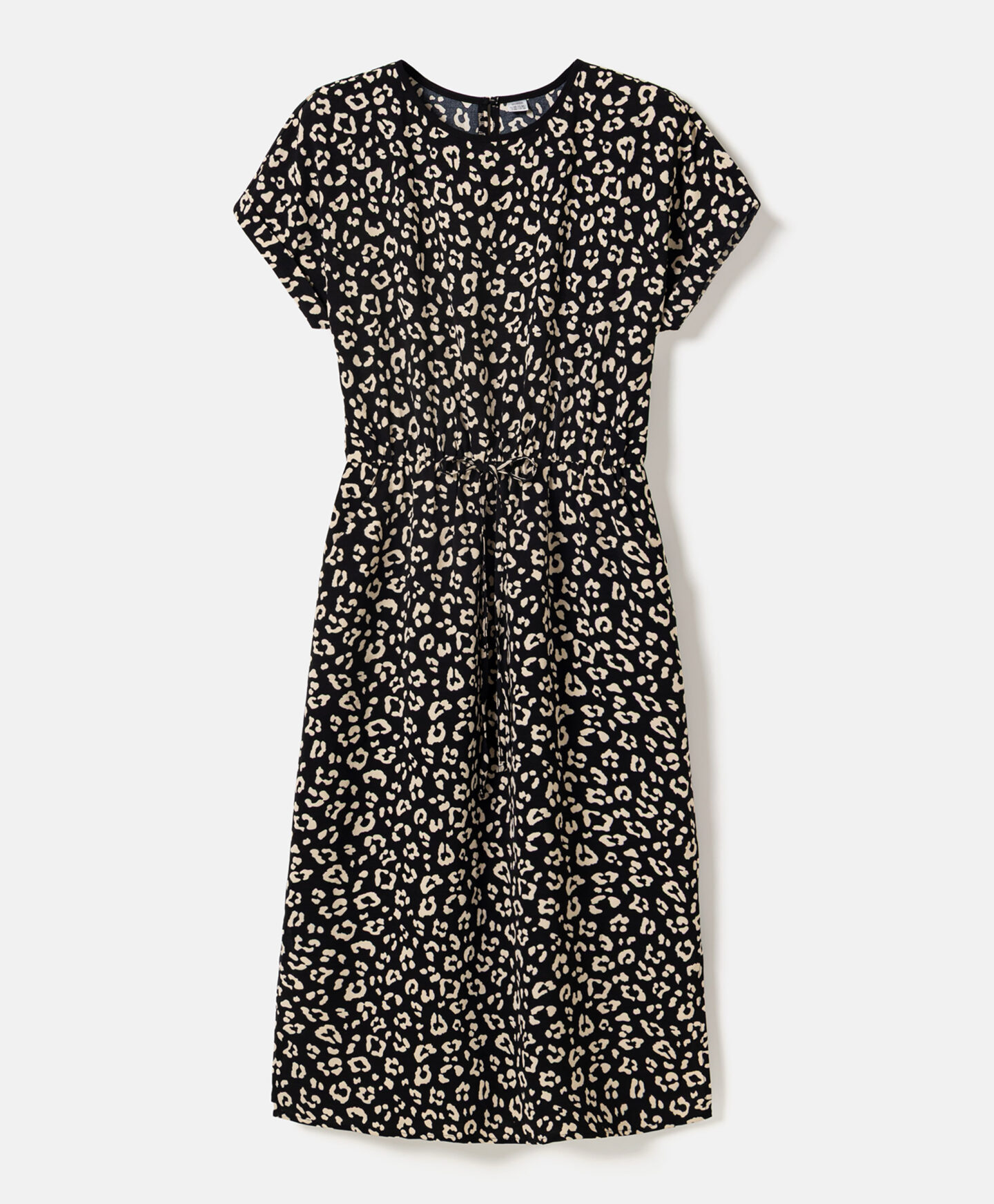 Obleka z leopardjim vzorcem za ženske z zavezovanjem v pasu je vsestranski kos, popoln za vsak dan. S potiskom boste izstopali iz množice. Obleka bo videti odlično v kombinaciji z džekijem ali suknjičem.