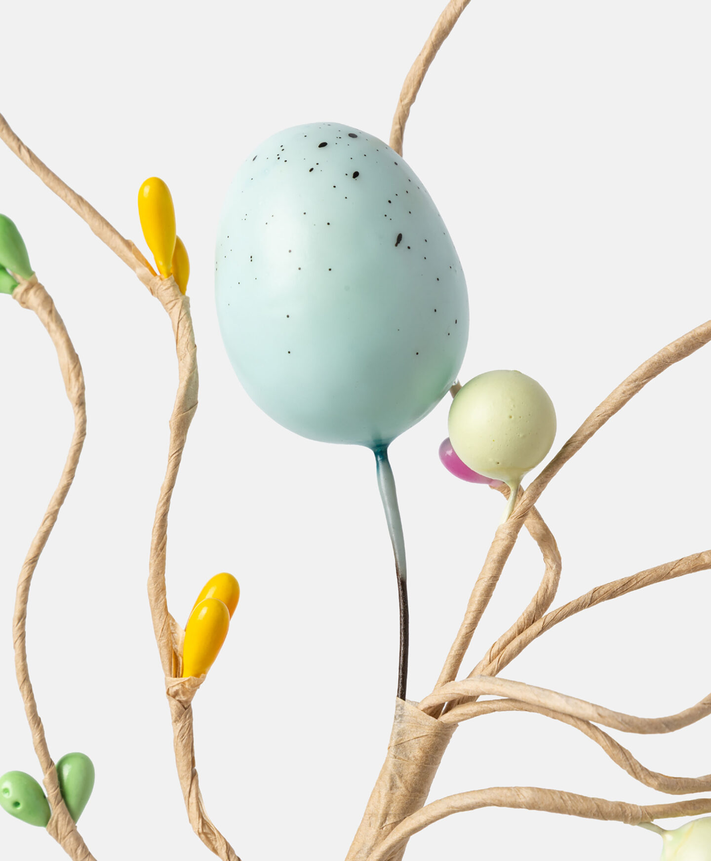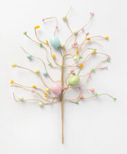 Okrasna veja s pisanimi mačicami in pirhi je popolna rešitev za tiste, ki iščejo že pripravljen okras. Uporabite jo lahko za izdelavo večjega velikonočnega aranžmaja ali jo postavite v vazo ali lonček, in v svoj dom boste v hipu vnesli velikonočni pridih. Odlično se obnese tudi kot del šopka ali samostojno v vazi. Na izbiro sta dva motiva.