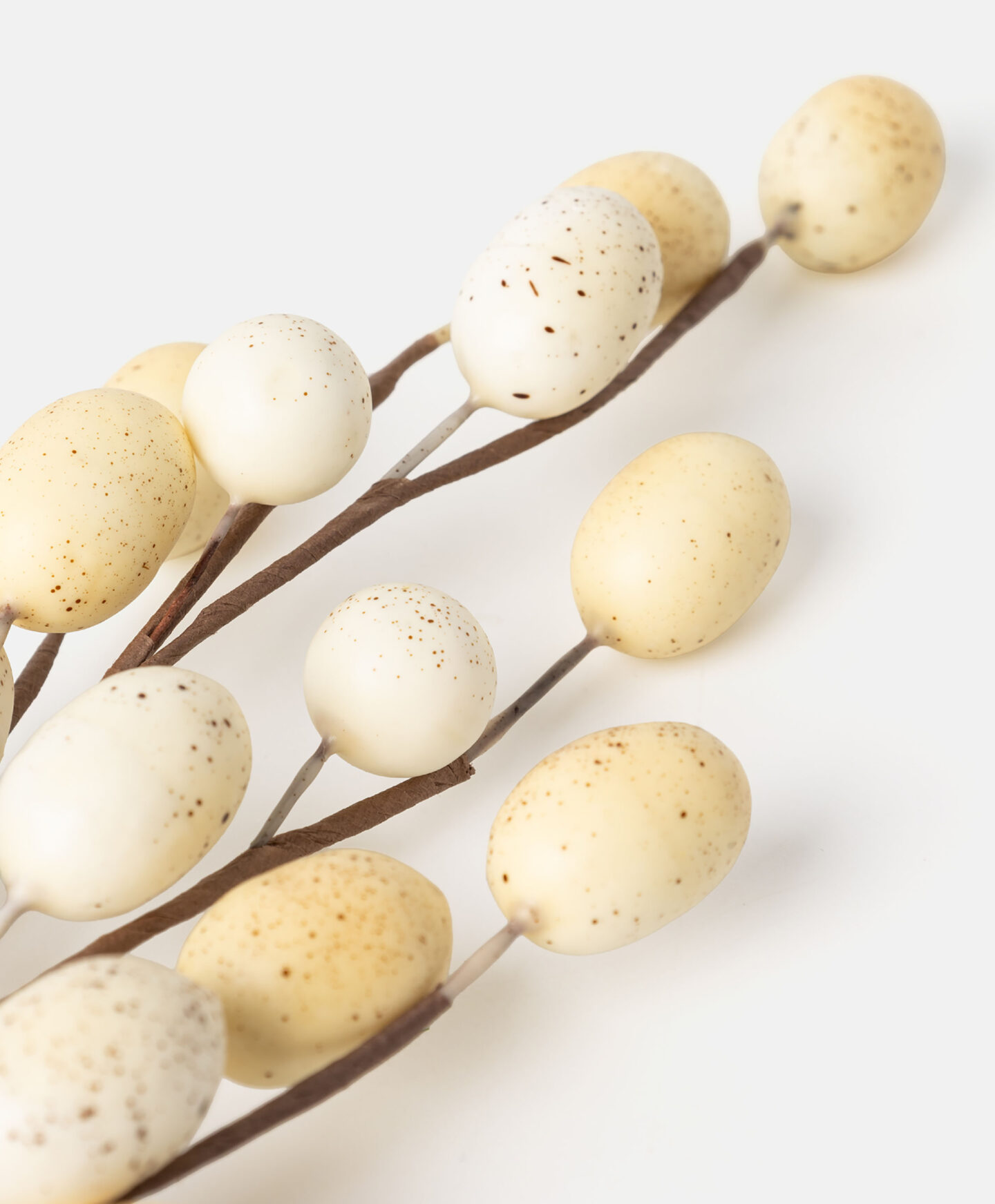 Okrasna veja s pirhi bo v vsakem domu ustvarila praznično vzdušje. Odlično se obnese tako kot namizni okras kot tudi v velikonočni košari. Postavite jo lahko tudi v cvetlični lonec ali pa jo položite na pogrinjek, da bo popestrila velikonočni zajtrk.