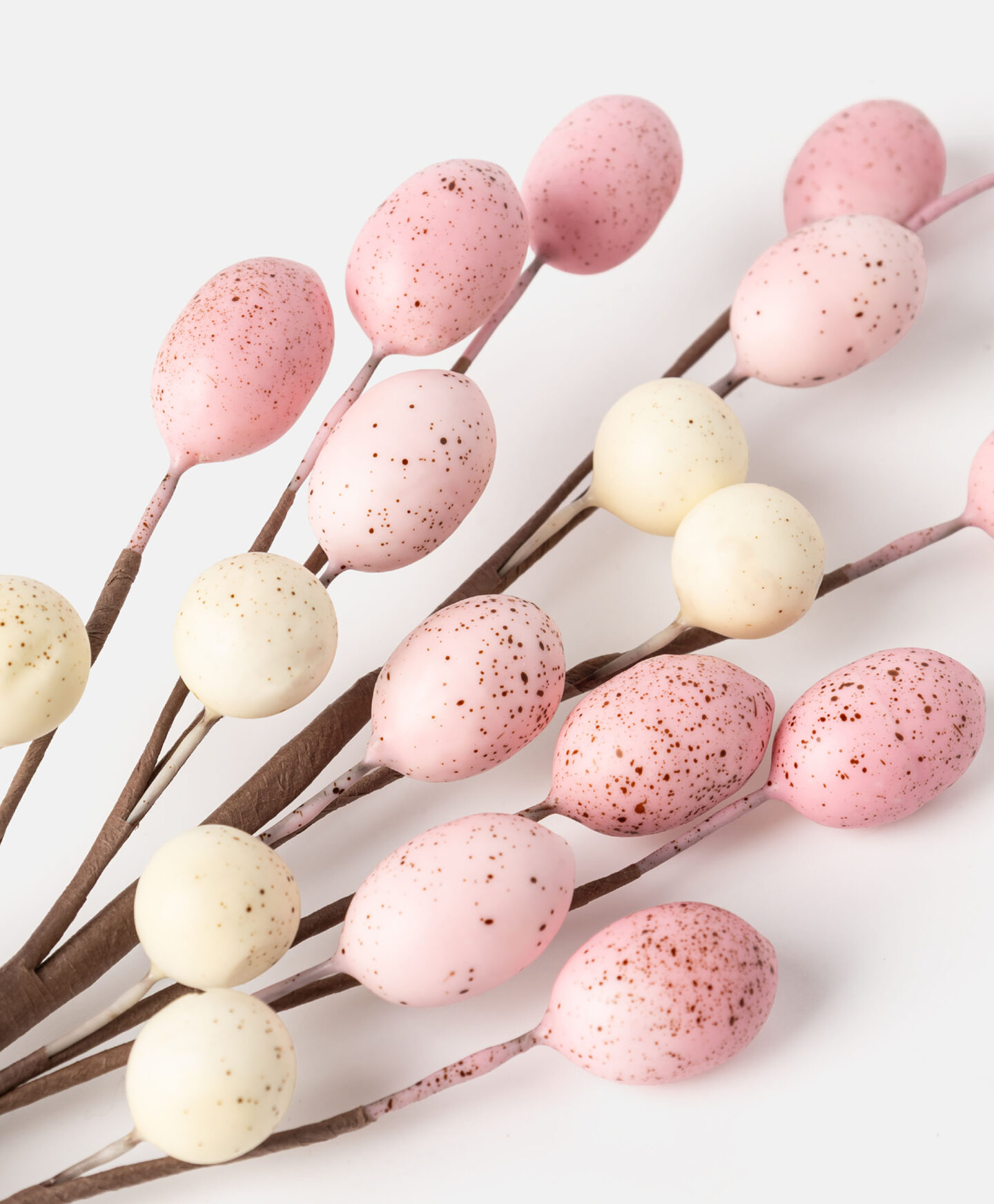 Okrasna veja z roza pirhi bo v vsakem domu ustvarila praznično vzdušje. Odlično se obnese tako kot namizni okras kot tudi v velikonočni košari. Postavite jo lahko tudi v cvetlični lonec ali pa jo položite na pogrinjek, da bo popestrila velikonočni zajtrk.