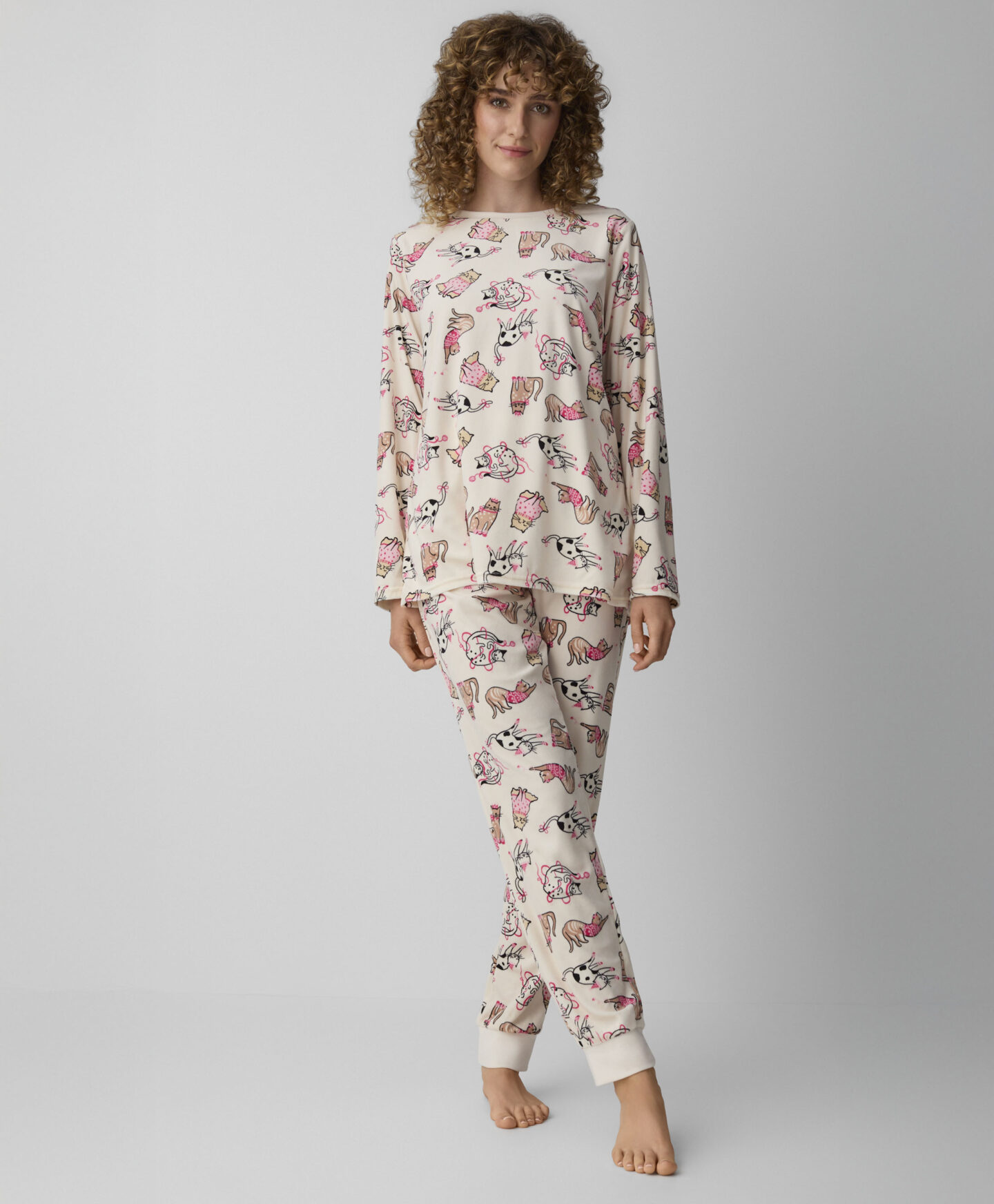 Pižama iz velurja za ženske z motivom mačk je popolna izbira za hladnejše dni. Narejena je iz mehkega in prijetnega velurja, ki zagotavlja toplino, udoben spanec in svobodo gibanja. Zaradi igrivih vzorcev z motivi mačk si boste pižamo želeli nadeti še pred spanjem.