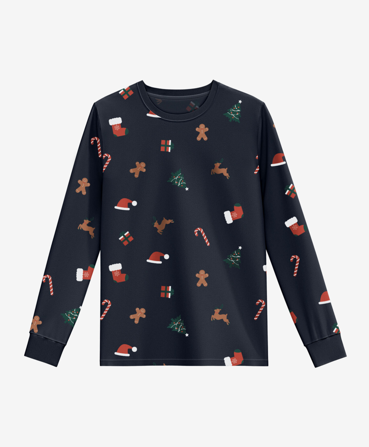Pižama za dečke z božičnim vzorcem bo razveselila vsakega malega zaspanca. Izdelana je iz mehkega, zračnega bombaža, ki bo vašega malčka nežno objel. Komplet vsebuje majico z dolgimi rokavi in hlače, zaradi česar je popoln za mrzle zimske noči. Praznični vzorec bo dolgim in toplim večerom dodal kanček čarobnosti.