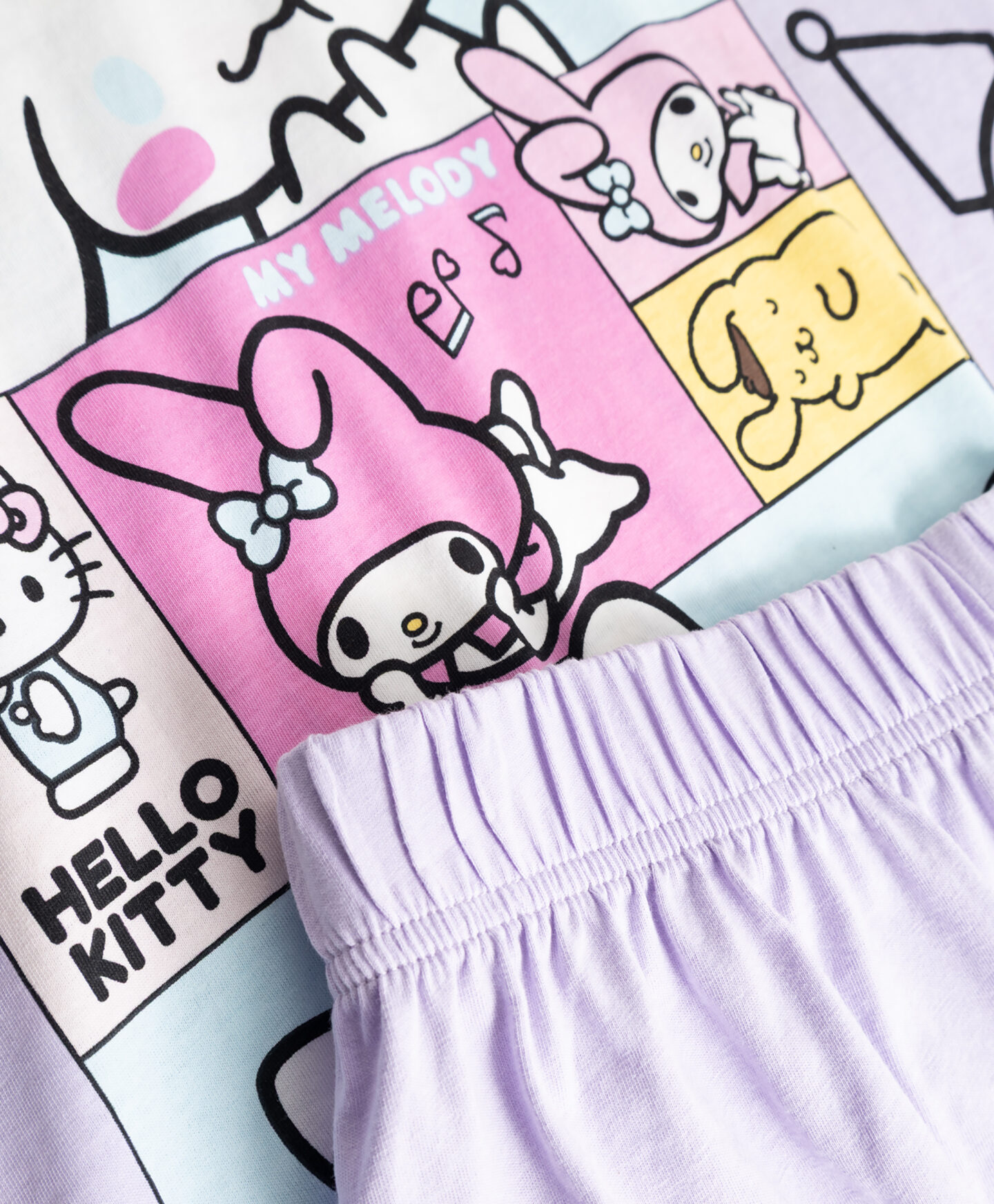 Pižama za deklice Hello Kitty & Friends iz 100% bombaža je sestavljena iz majice in kratkih hlač. Odlično se bo obnesla v toplejših nočeh. Material je koži prijazen in nežno objame otroka med spanjem, klasičen kroj pa hkrati zagotavlja popolno svobodo gibanja. V ponudbi so na voljo različni motivi.