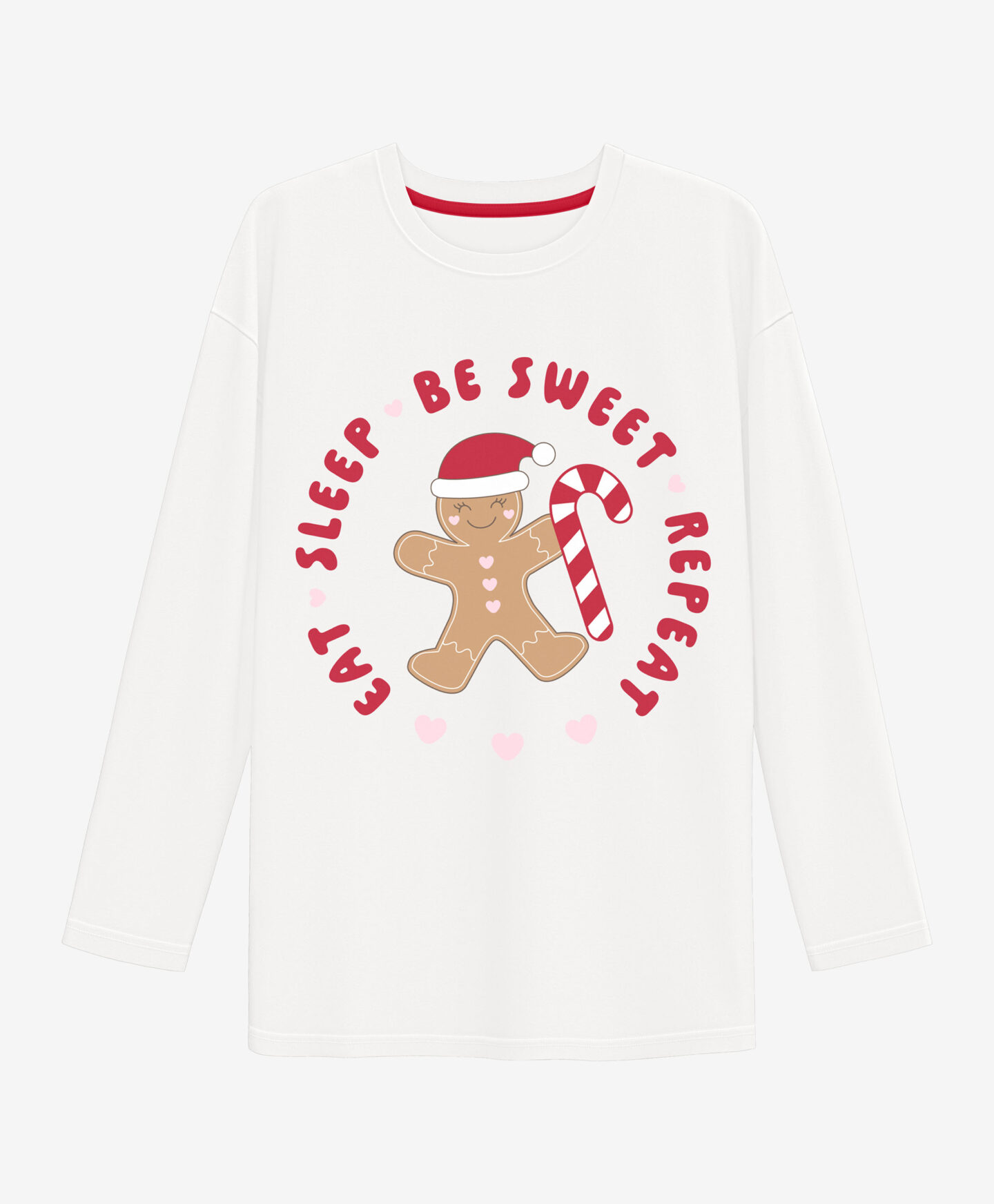 Pižama za deklice z motivom medenjakov iz 100% bombaža je čudovita izbira za zimske večere. Komplet je sestavljen iz majice z dolgimi rokavi in hlač, ki zagotavljajo udobje in toplino med spanjem. Mehak bombaž je nežen do otroške kože, božični vzorec z medenjakom na sprednji strani pa vsakemu trenutku doda čar in ustvari veselo vzdušje.