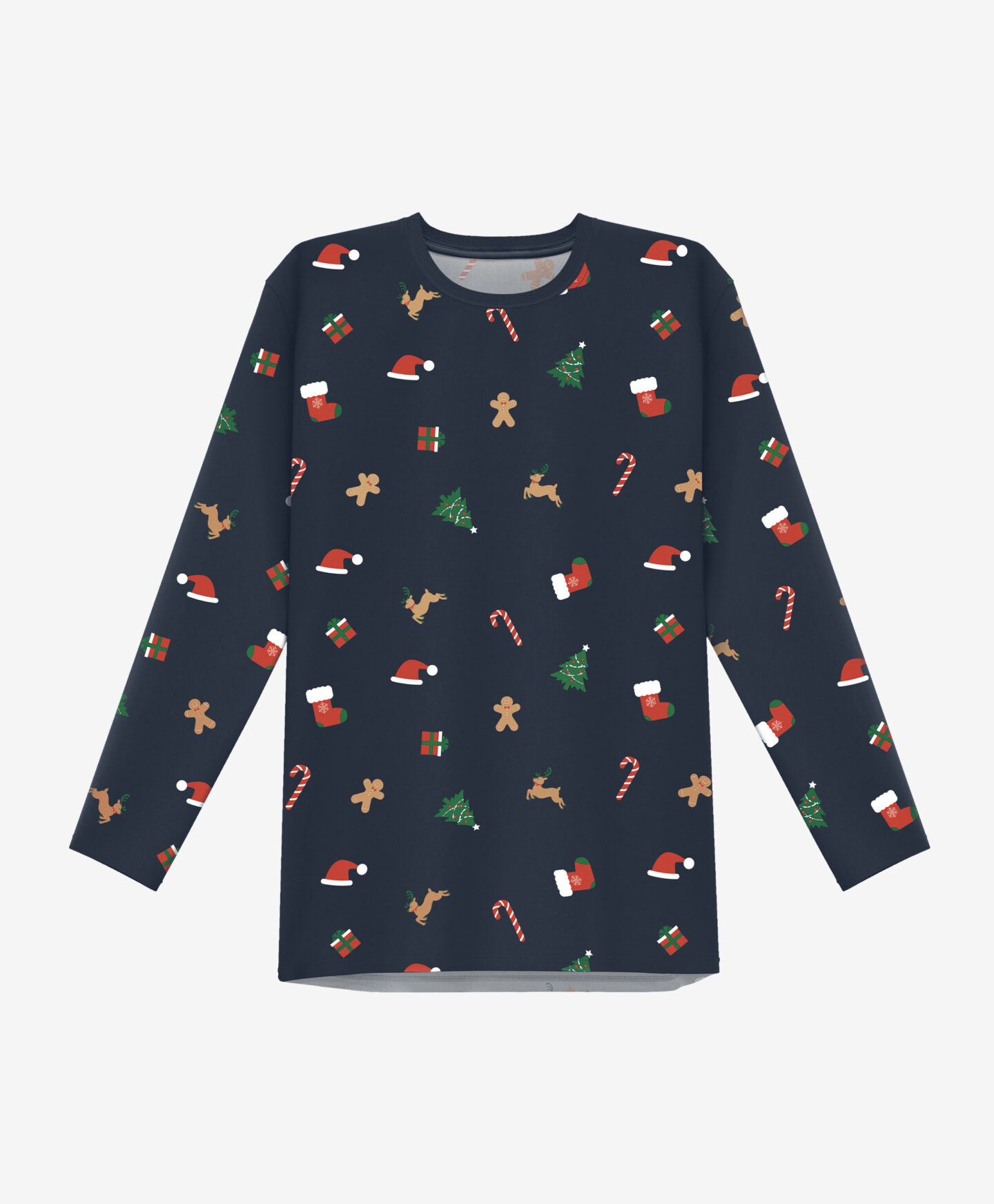 Pižama za moške z božičnim motivom je sestavljena iz majice z dolgimi rokavi in hlač. Intenzivno mornarsko modro barvo krasijo božični motivi daril, božičnih drevesc, piškotov in sladkornih palčk. To je popolno božično ali Miklavževo darilo za vse sladkosnedce. Na voljo je tudi pižama za dečke.