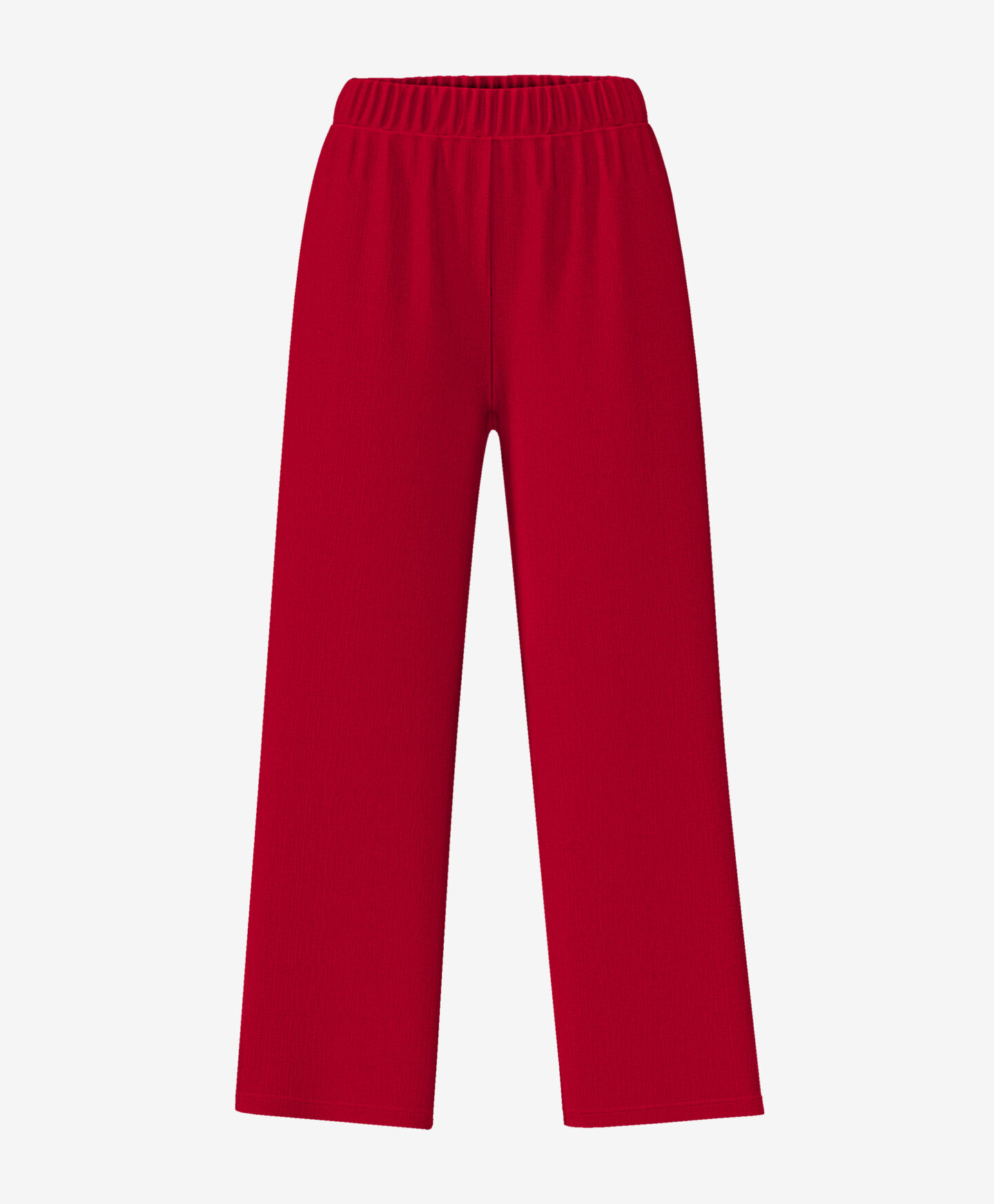 Pižama za ženske je lahka in zračna. Elegantna temno rdeča barva se odlično obnese v prazničnem času. Komplet je sestavljen iz majice z dolgimi rokavi in širokih hlač, ki nudijo popolno svobodo gibanja.