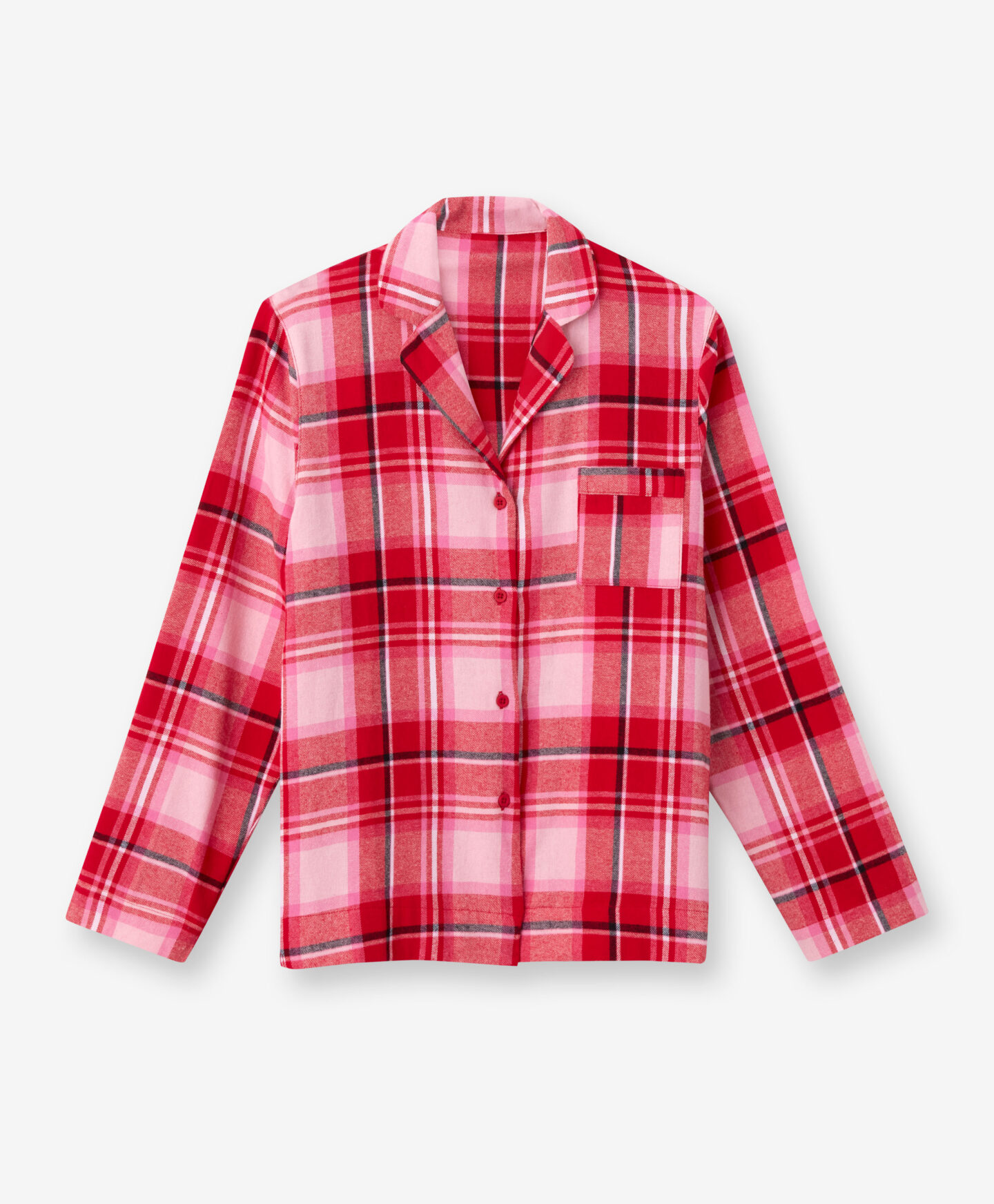 Pižama za ženske s karirastim vzorcem iz 100% bombaža je topla, mehka in nežna. Popolna je za prijetne zimske večere in poskrbela bo za udoben spanec. Zaradi klasičnega karirastega vzorca in praznične barve je pižama odlična ideja za darilo.