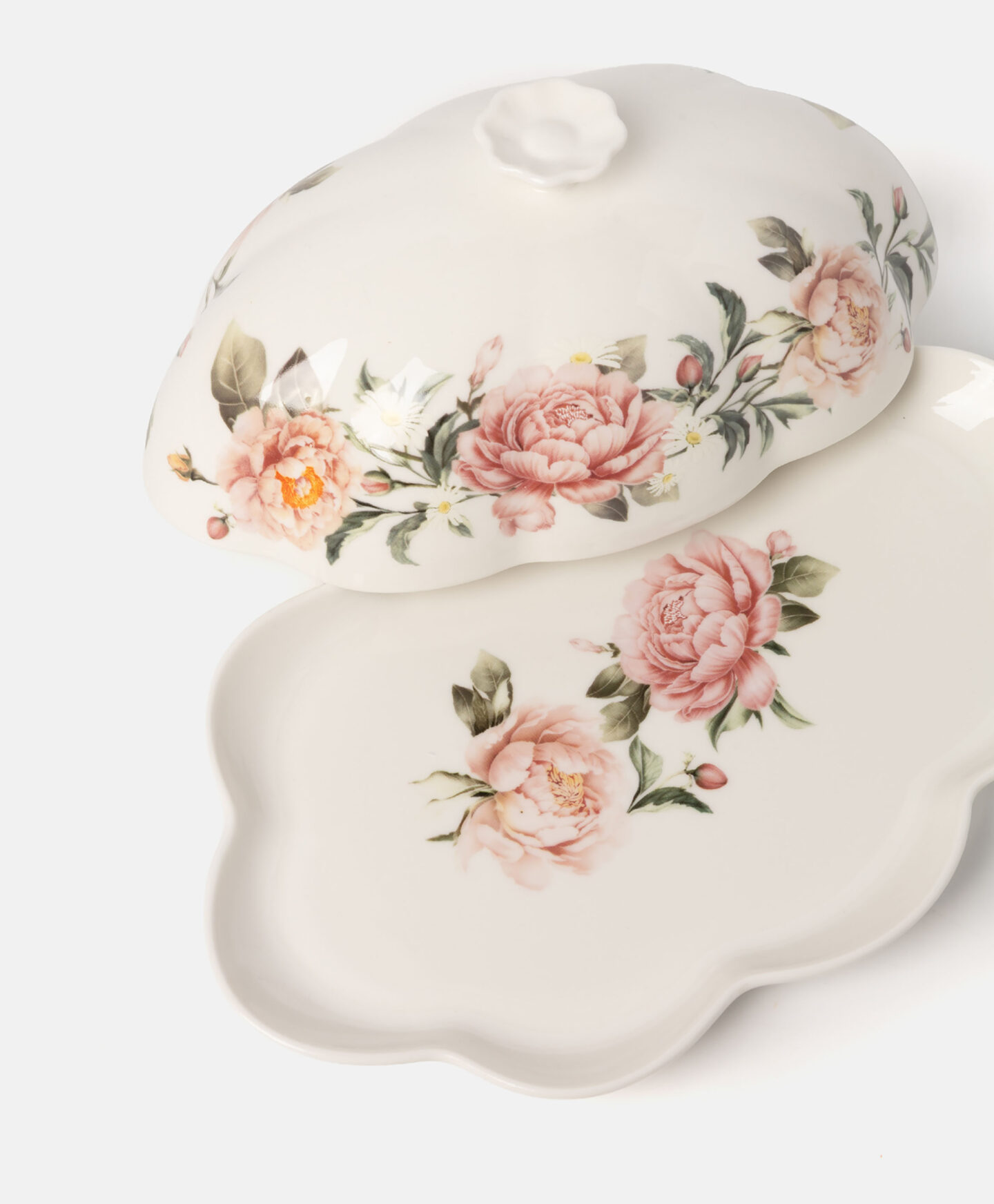 Posoda za maslo s cvetličnim vzorcem odlično dopolnjuje namizni pribor in posodje iz najnovejše kolekcije. Izdelana je iz porcelana New Bone China, zato bo dolgo ohranila svoj bež finiš in nežen sijaj. Motiv cvetočih potonik bo na vaše omizje prinesel pomlad! Posoda je popolna tako za vsakodnevno uporabo kot za posebne priložnosti.