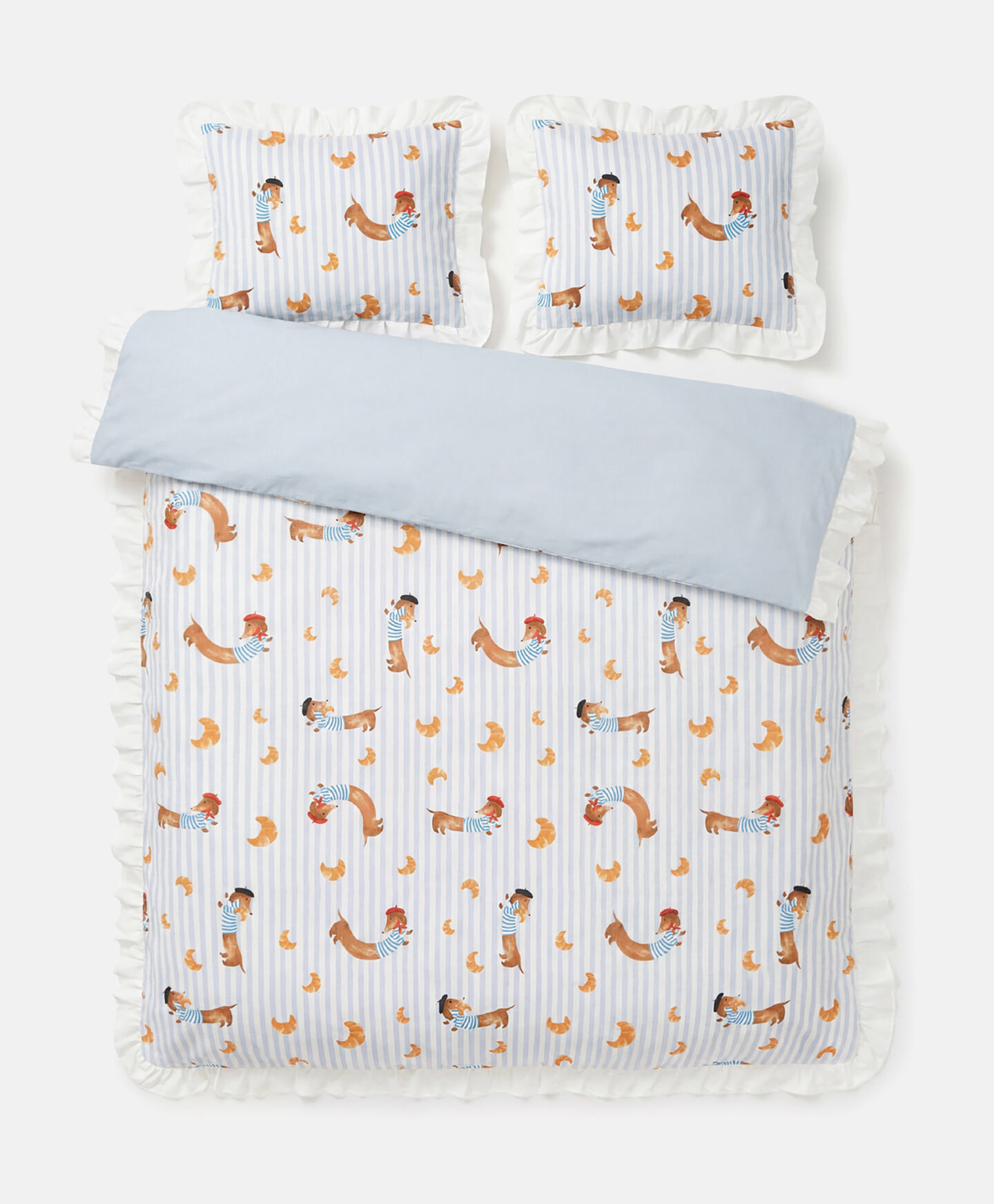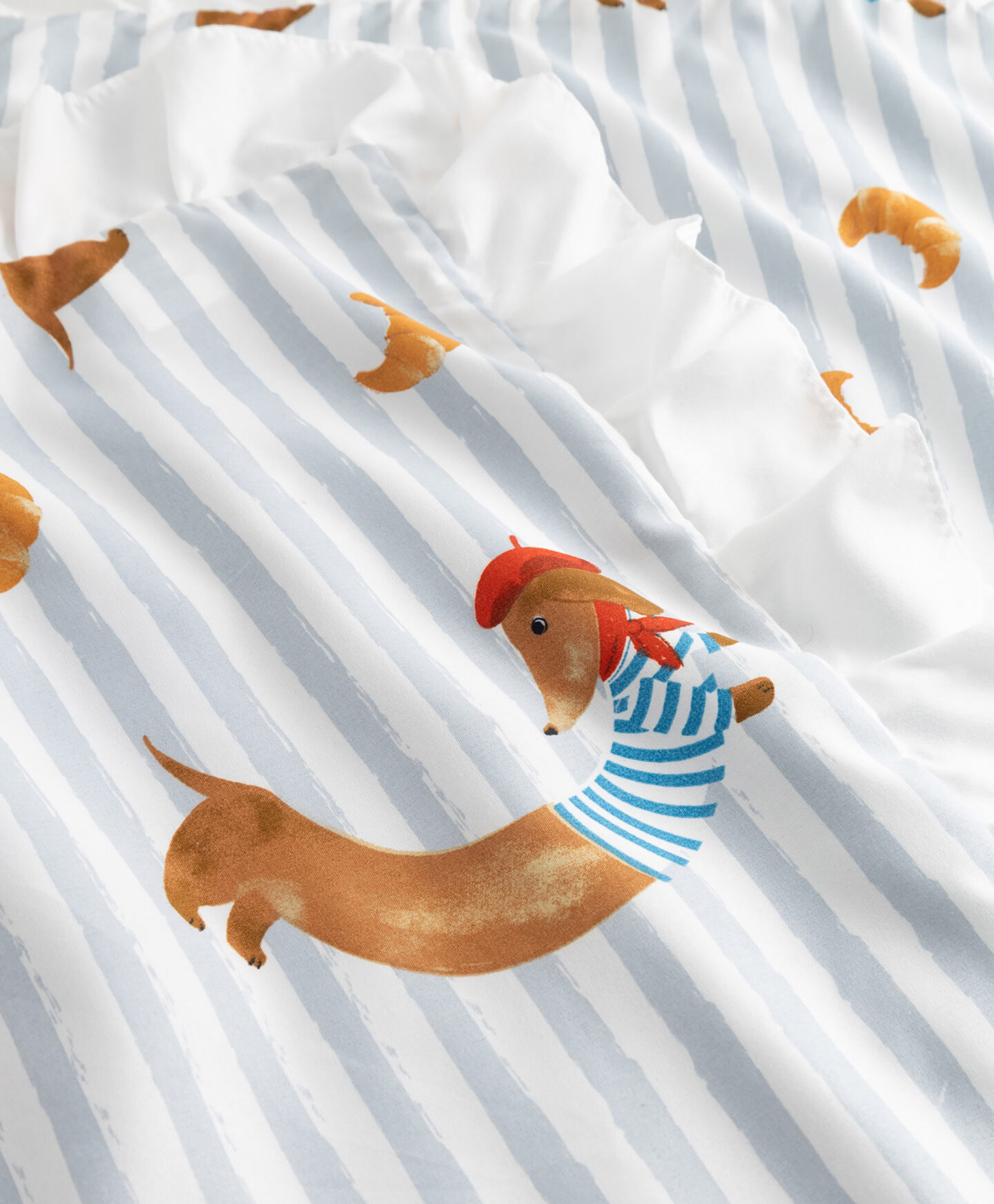 Posteljnina z motivom jazbečarja 200×220 cm je kot nalašč za vse tiste, ki iščejo elegantno posteljnino za svojo spalnico. Bela barva v kombinaciji z ljubkim vzorcem kužkov z baretkami bo v vsak prostor vnesla prefinjen pridih. Komplet vključuje prevleko za odejo 160×200 cm in dve prevleki za vzglavnik 50×60 cm.