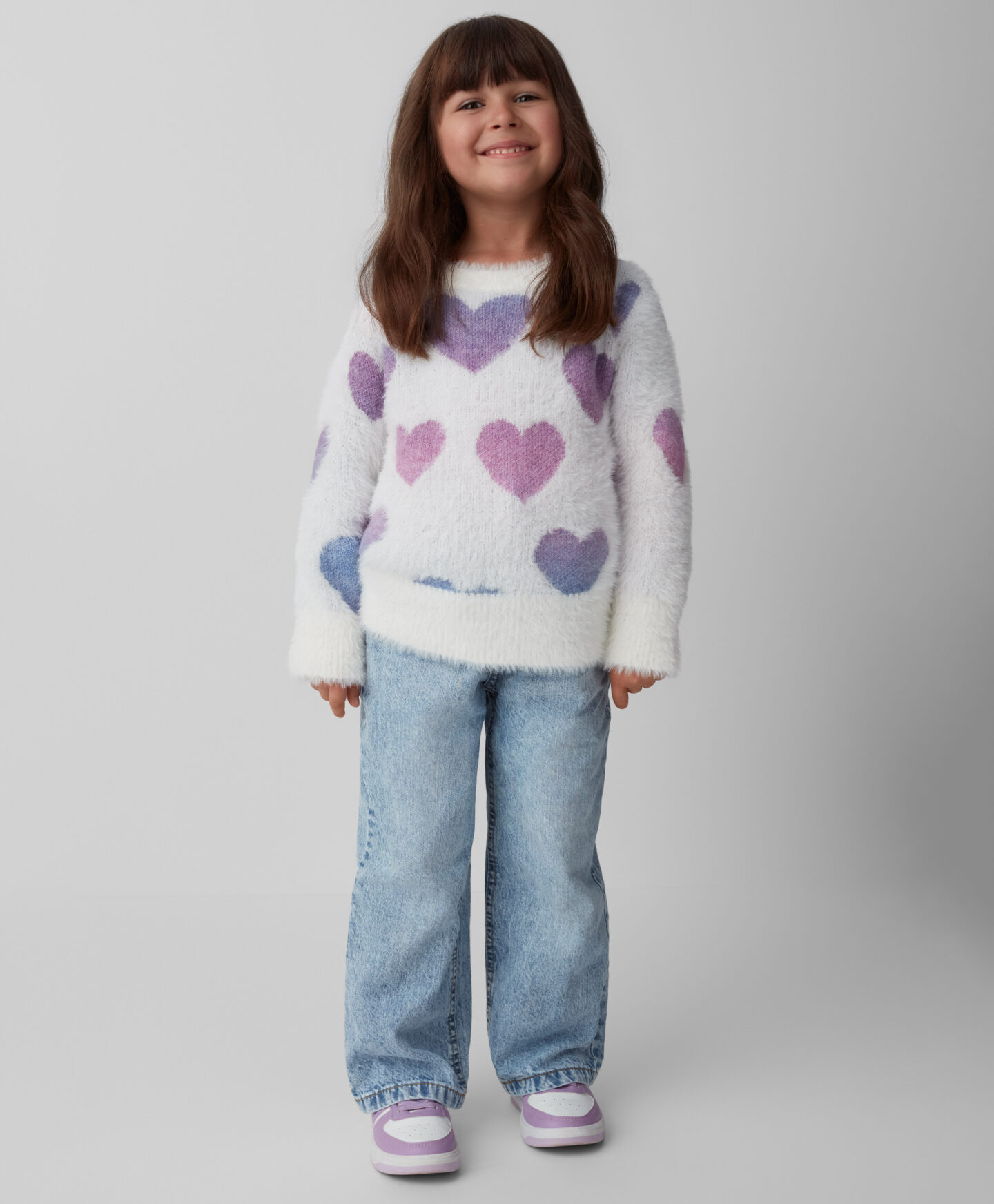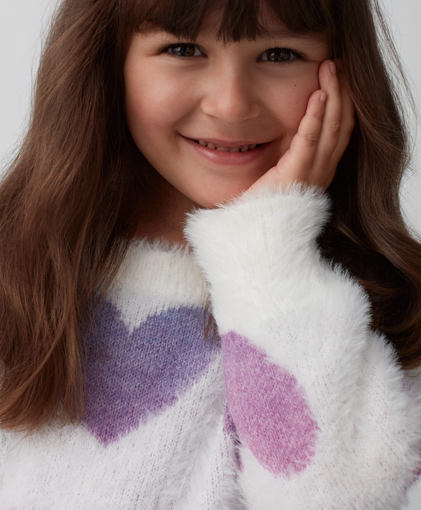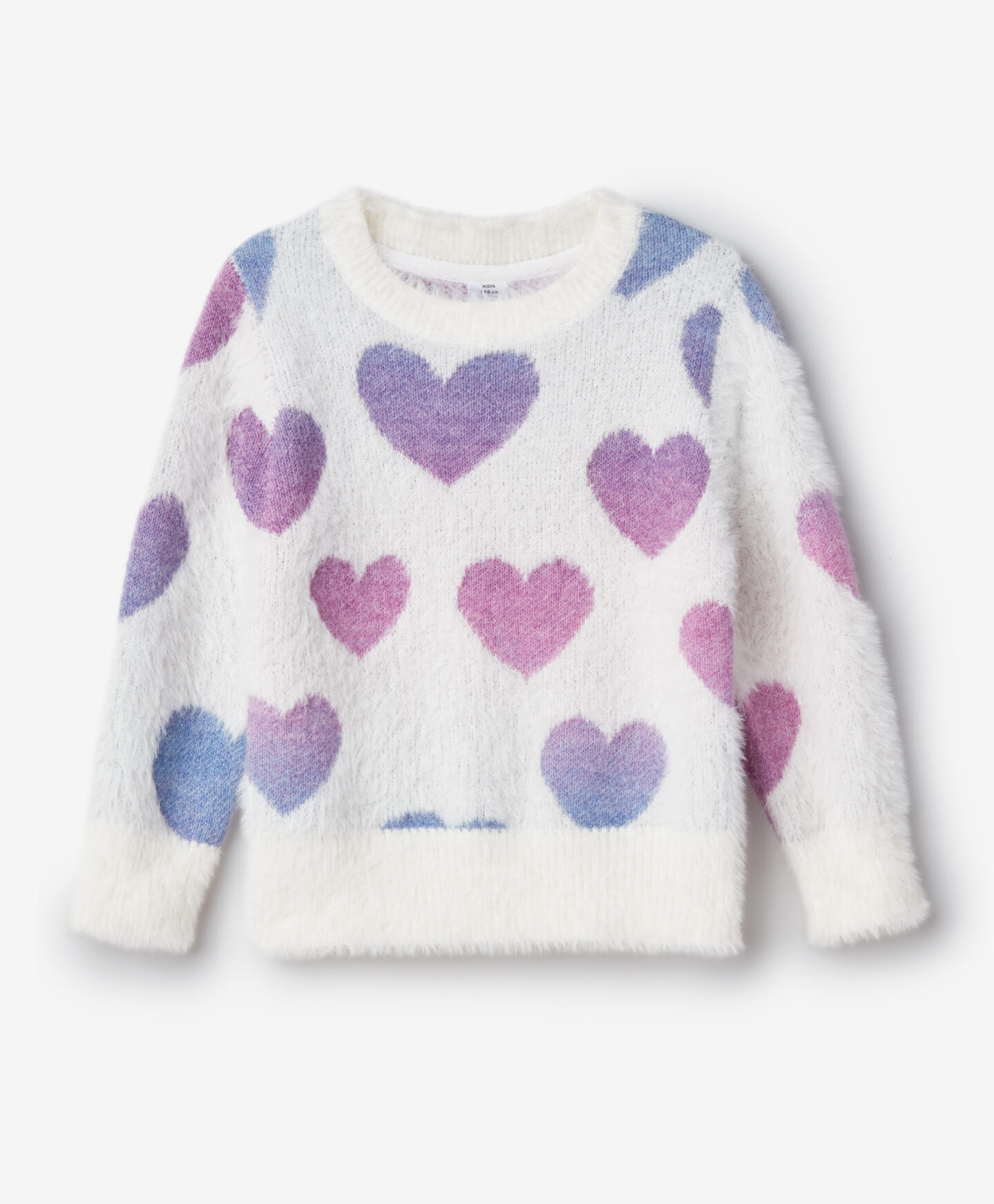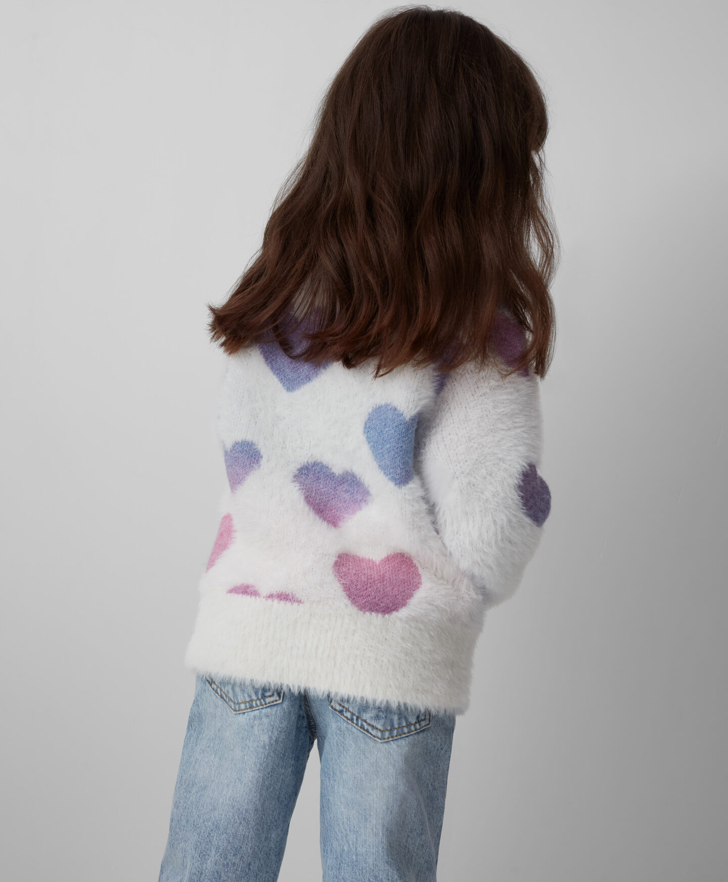 Pulover za deklice s potiskom srčkov je kot nalašč za male ljubiteljice udobja in topline. Zaradi čudovitega dizajna je mehak in prijeten na dotik. Idealen bo za jesenske in zimske dni in je odlična izbira za v vrtec, šolo ali za prosti čas. Popolno se bo ujemal s kavbojkami in pajkicami.