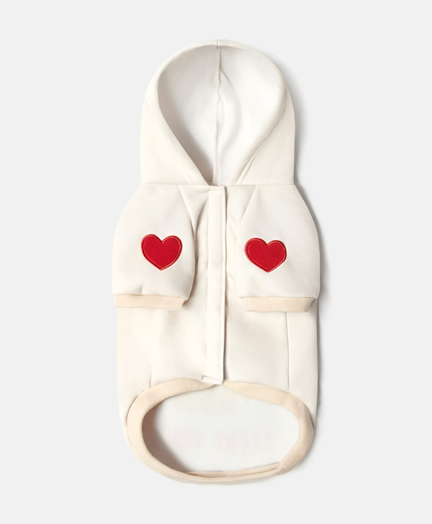 Pulover s kapuco za pse velikosti L z romantičnim motivom je odlična ideja za darilo za večje hišne ljubljenčke. Vašega kosmatinca bo grel med sprehodi in igro na prostem, poleg tega pa bo videti naravnost čudovito! V ponudbi so na voljo različne velikosti.