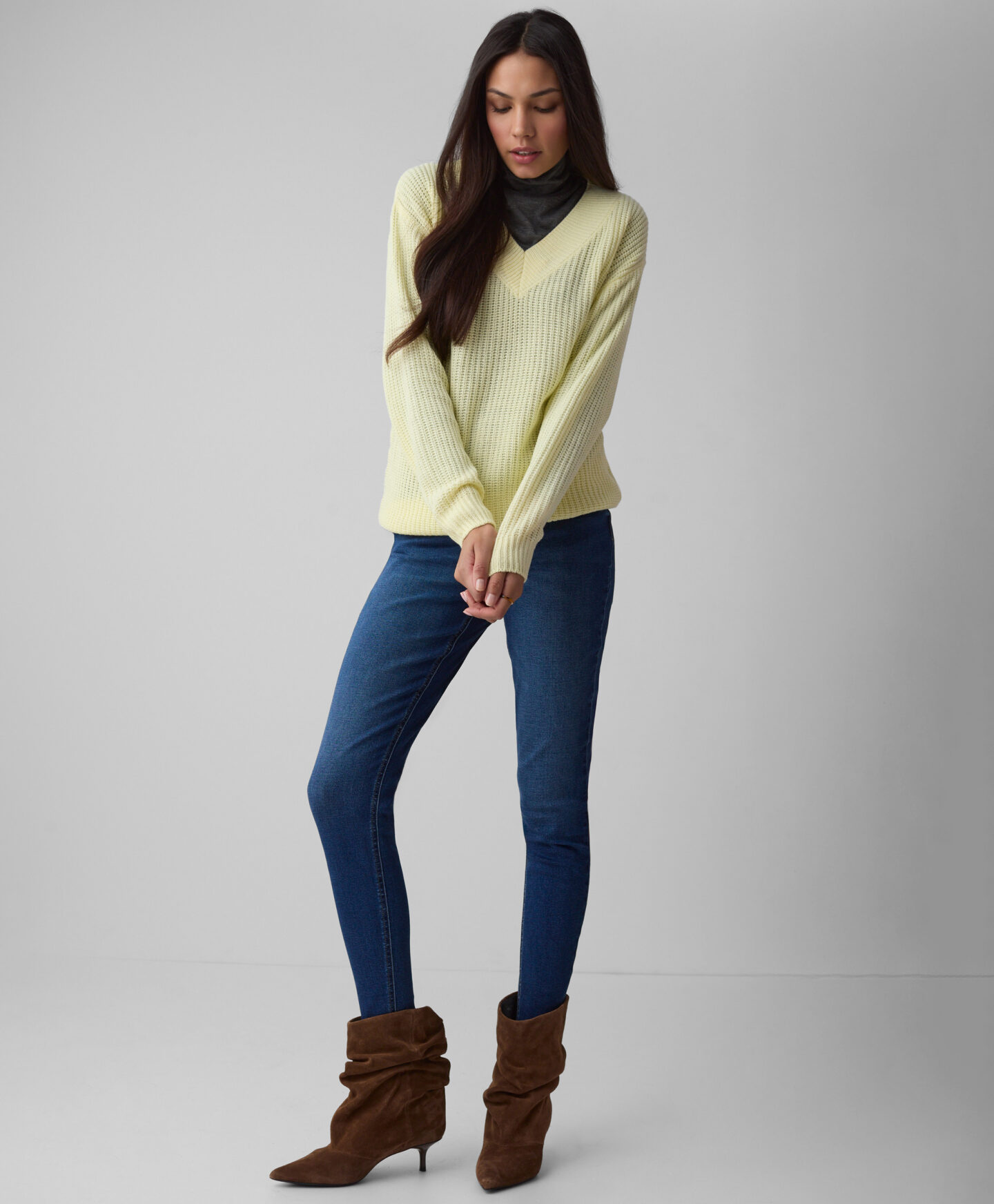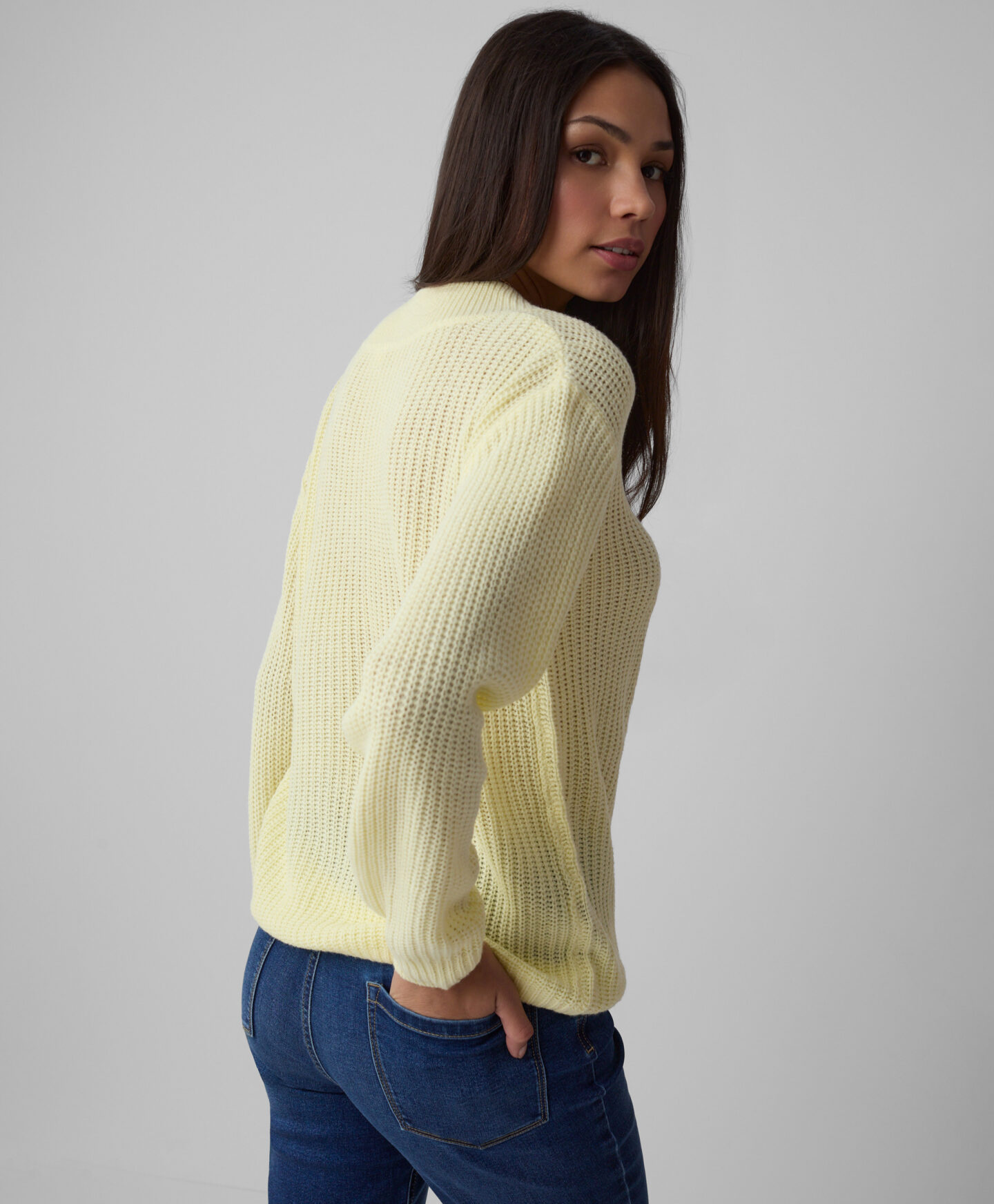 Rumen pulover za ženske z V-izrezom je popoln za vsakodnevno nošenje. Odlična izbira je za čez majico ali elegantno srajco. Izrez na sprednji strani poudari dekolte in optično podaljša vrat, vzorec pletenine pa doda karakter prav vsakemu stajlingu. Pulover je topel, mehak in zelo ženstven. Na voljo v dveh dizajnih.