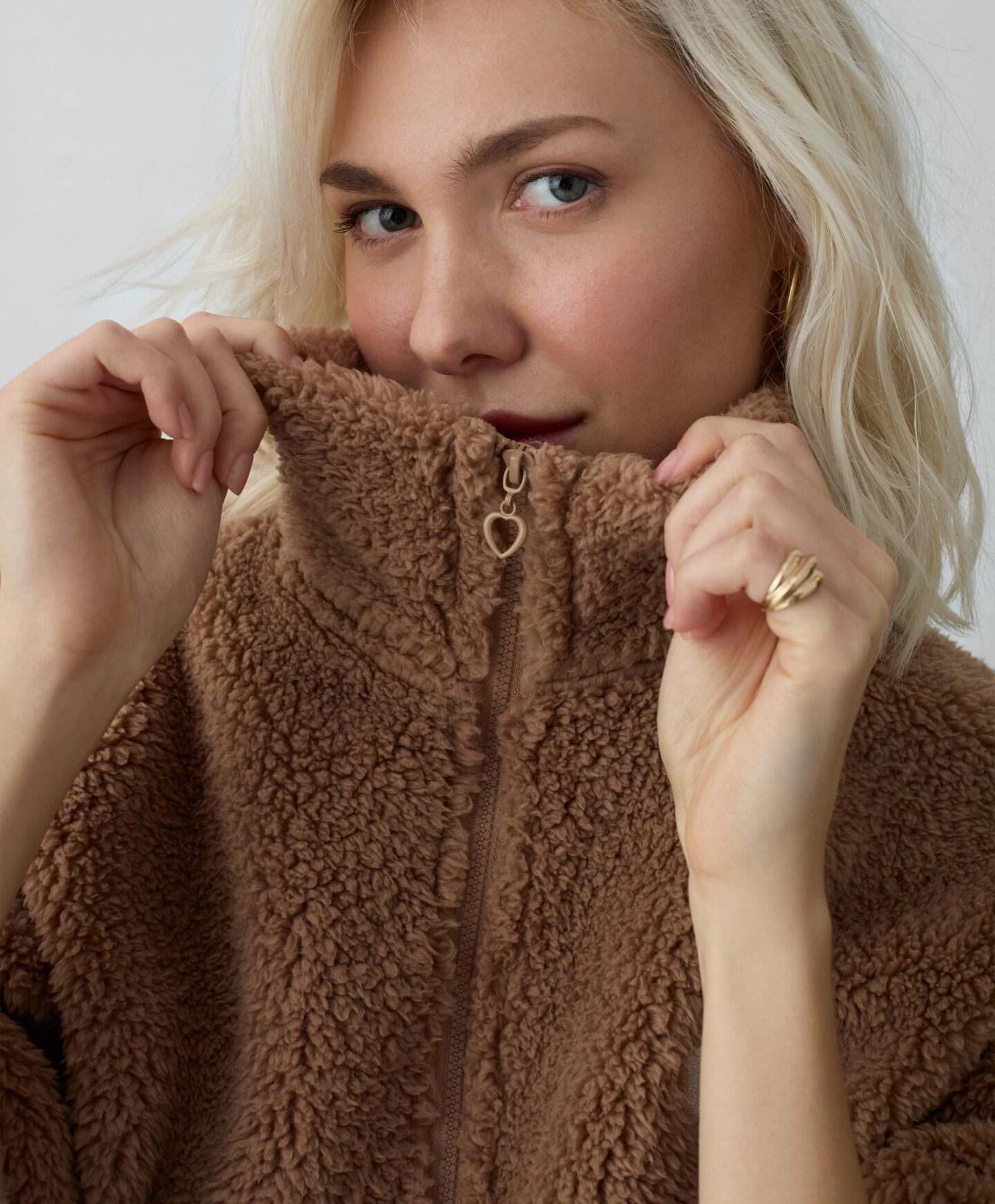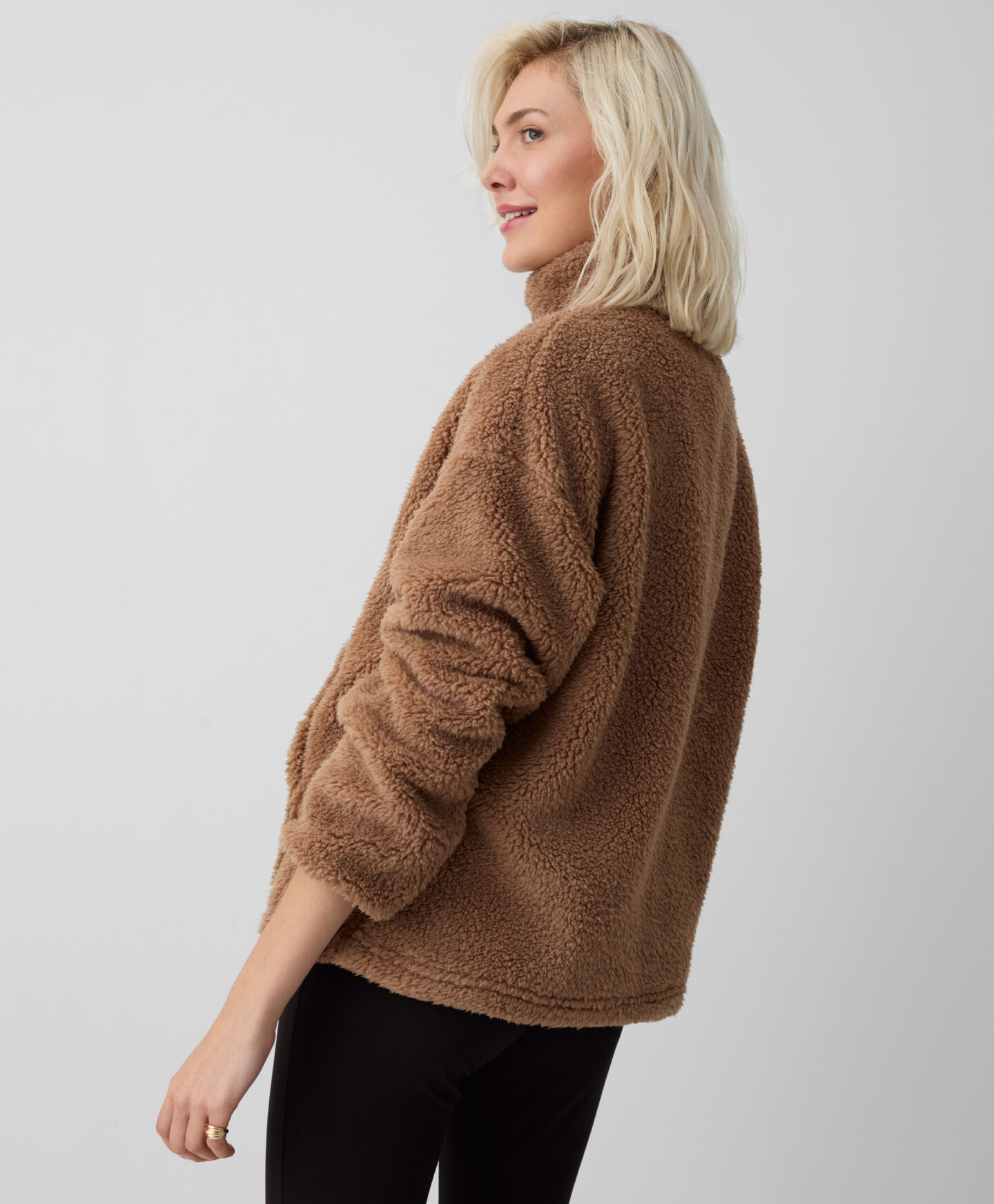 Rjav pulover iz flisa sherpa za ženske