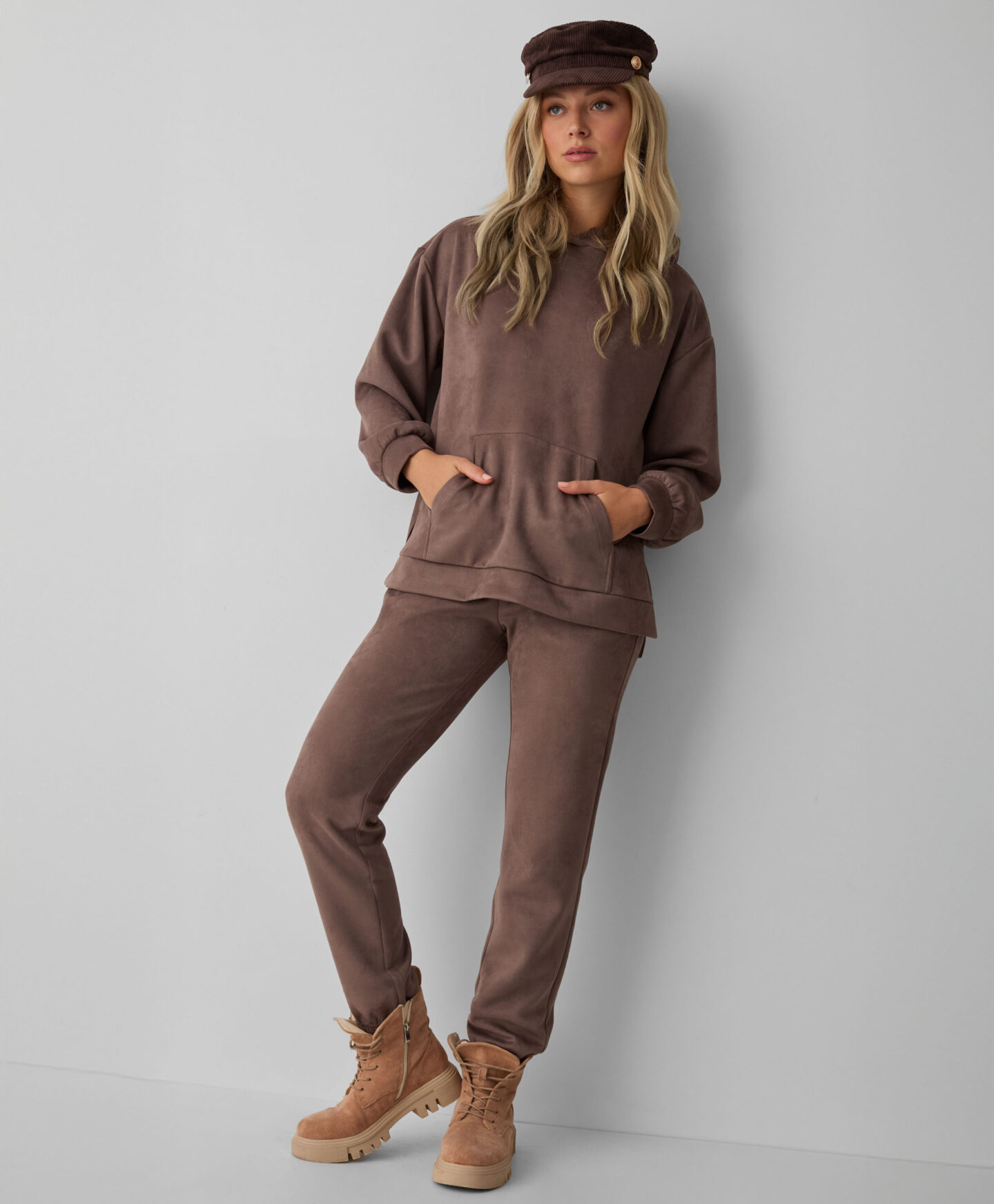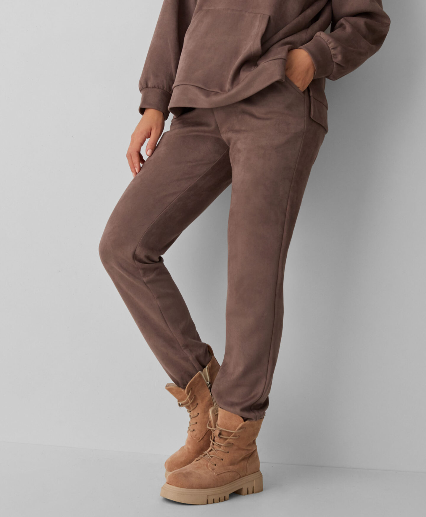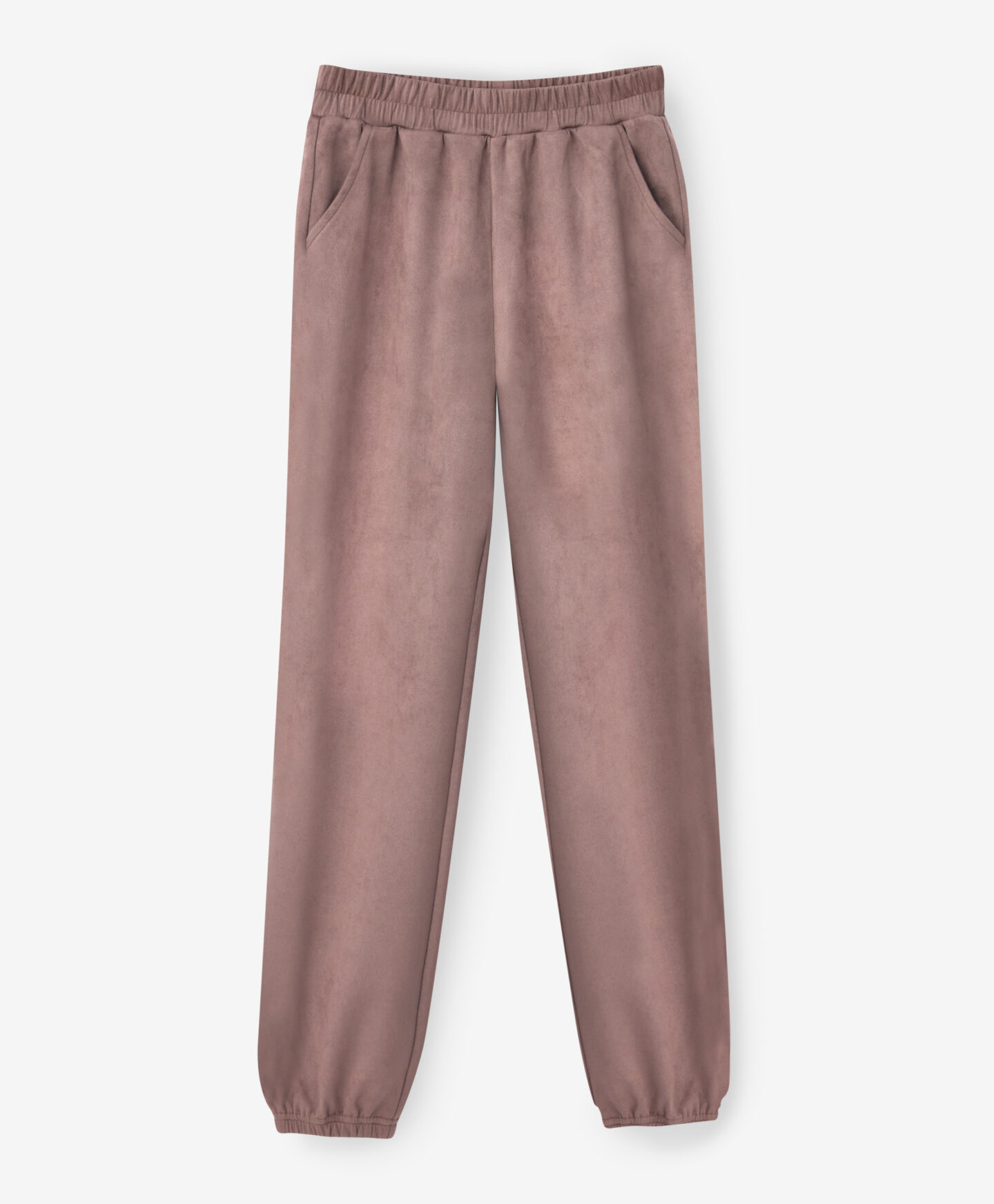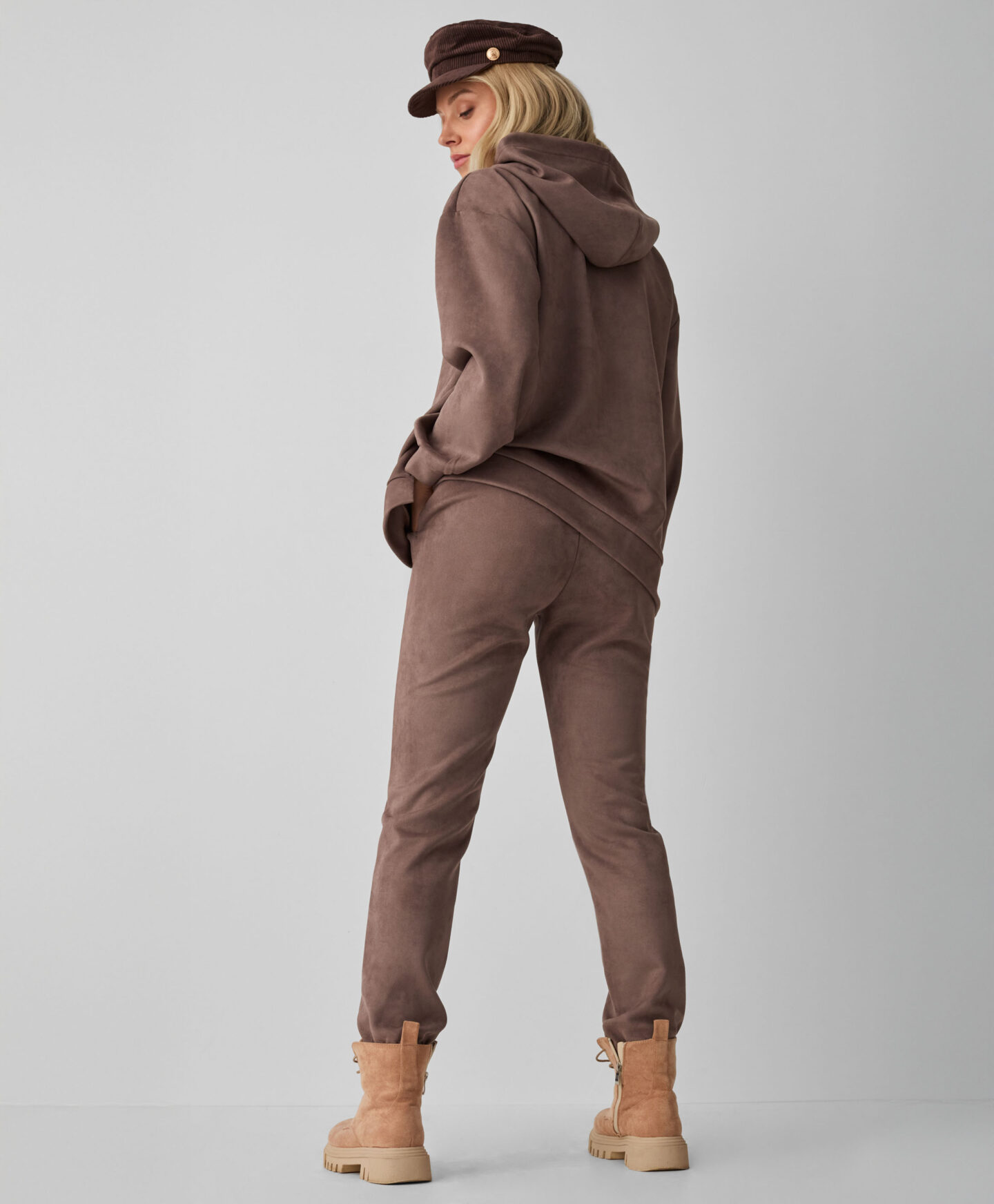 Rjav spodnji del trenirke iz semiša za ženske z žepi je elegantna in udobna izbira za vsak dan. Hlače so mehke, prijetne na dotik in bodo kot nalašč za jesenske sprehode. Umirjen odtenek rjave barve se odlično poda k zgornjemu delu trenirke s kapuco iz iste kolekcije. Na izbiro so različni dizajni.