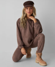 Rjav spodnji del trenirke iz semiša za ženske z žepi je elegantna in udobna izbira za vsak dan. Hlače so mehke, prijetne na dotik in bodo kot nalašč za jesenske sprehode. Umirjen odtenek rjave barve se odlično poda k zgornjemu delu trenirke s kapuco iz iste kolekcije. Na izbiro so različni dizajni.
