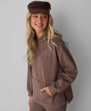 Rjav zgornji del trenirke za ženske iz semiša s kapuco vam bo nudil udobje in toploto v hladnih dneh. Ni le udoben, temveč tudi eleganten. Mehak material, skrbna zasnova in ženstvena barva zagotavljajo, da bo to postal vaš najljubši jesenski pulover! Popolno se ujema s spodnjim delom trenirke iz semiša iz kolekcije. V trgovini ga boste našli v dveh barvnih različicah.