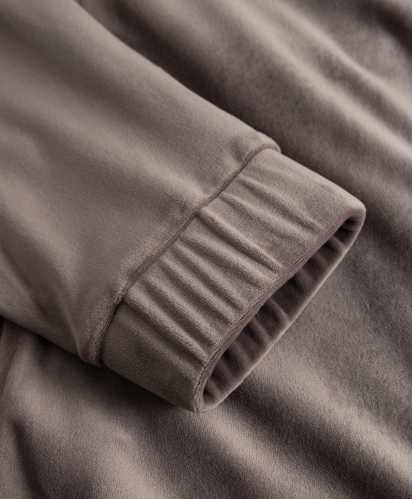 Rjav zgornji del trenirke za ženske iz velurja je popoln za vse, ki želijo ustvariti eleganten videz, najsibo doma ali ob vsakodnevnih priložnostih. Žamet je neverjetno mehak na otip, odporen proti gubam in lepo pade po postavi. Uporabna zadrga omogoča hitro spremembo stila – pulover namreč lahko nosite zapet kot klasičen pulover ali pa odpetega čez majico za športno-eleganten videz.