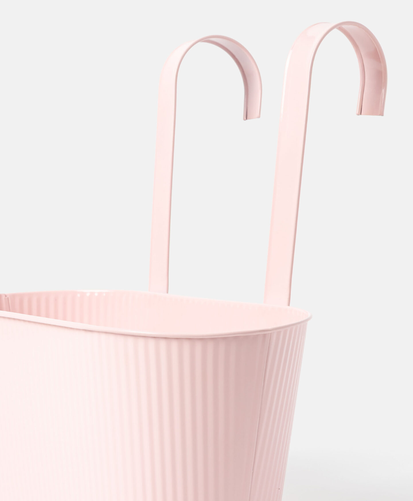 Roza podolgovat viseč cvetlični lonec z rebrastimi stenami vas bo navdušil s pomladnim dizajnom. Praktični kaveljčki omogočajo enostavno namestitev na balkonsko ograjo ali steno ter tako optimizirajo uporabo prostora. V ponudbi so na voljo različni vzorci.