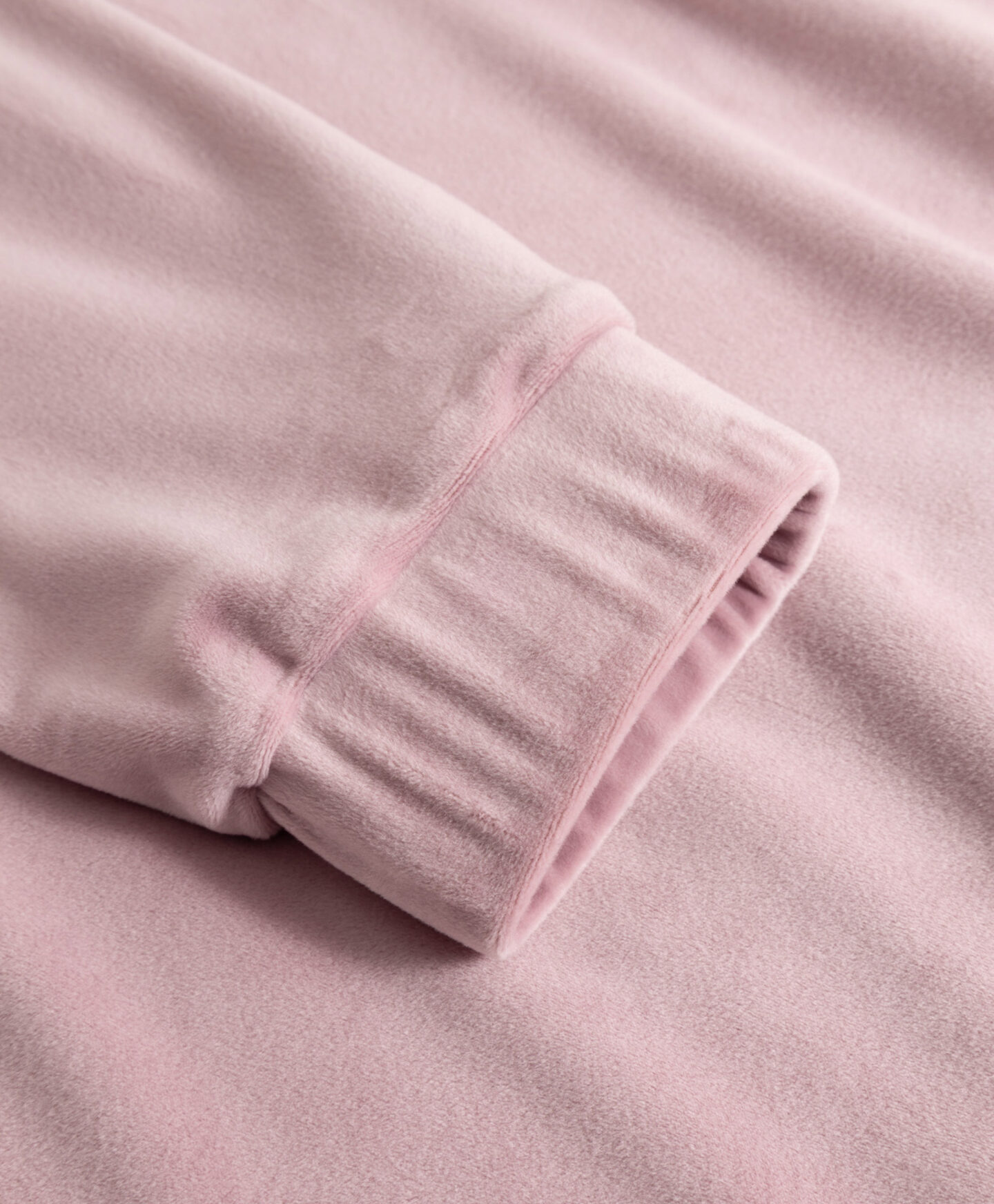 Roza zgornji del trenirke za ženske iz velurja je popoln za vse, ki želijo ustvariti eleganten videz, najsibo doma ali ob vsakodnevnih priložnostih. Žamet je neverjetno mehak na otip, odporen proti gubam in lepo pade po postavi. Uporabna zadrga omogoča hitro spremembo stila – pulover namreč lahko nosite zapet kot klasičen pulover ali pa odpetega čez majico za športno-eleganten videz.