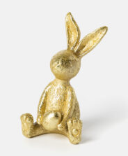 Sedeč zlati zajec iz polirezina pritegne pozornost s svojo prefinjenostjo. Polirezin je lahek in trpežen material, odporen na zob časa in vremenske razmere, kar zagotavlja dolgotrajno kakovost figurice. Zajček je popoln za tiste, ki iščejo nežne, prefinjene poudarke. Na voljo so različni dizajni.