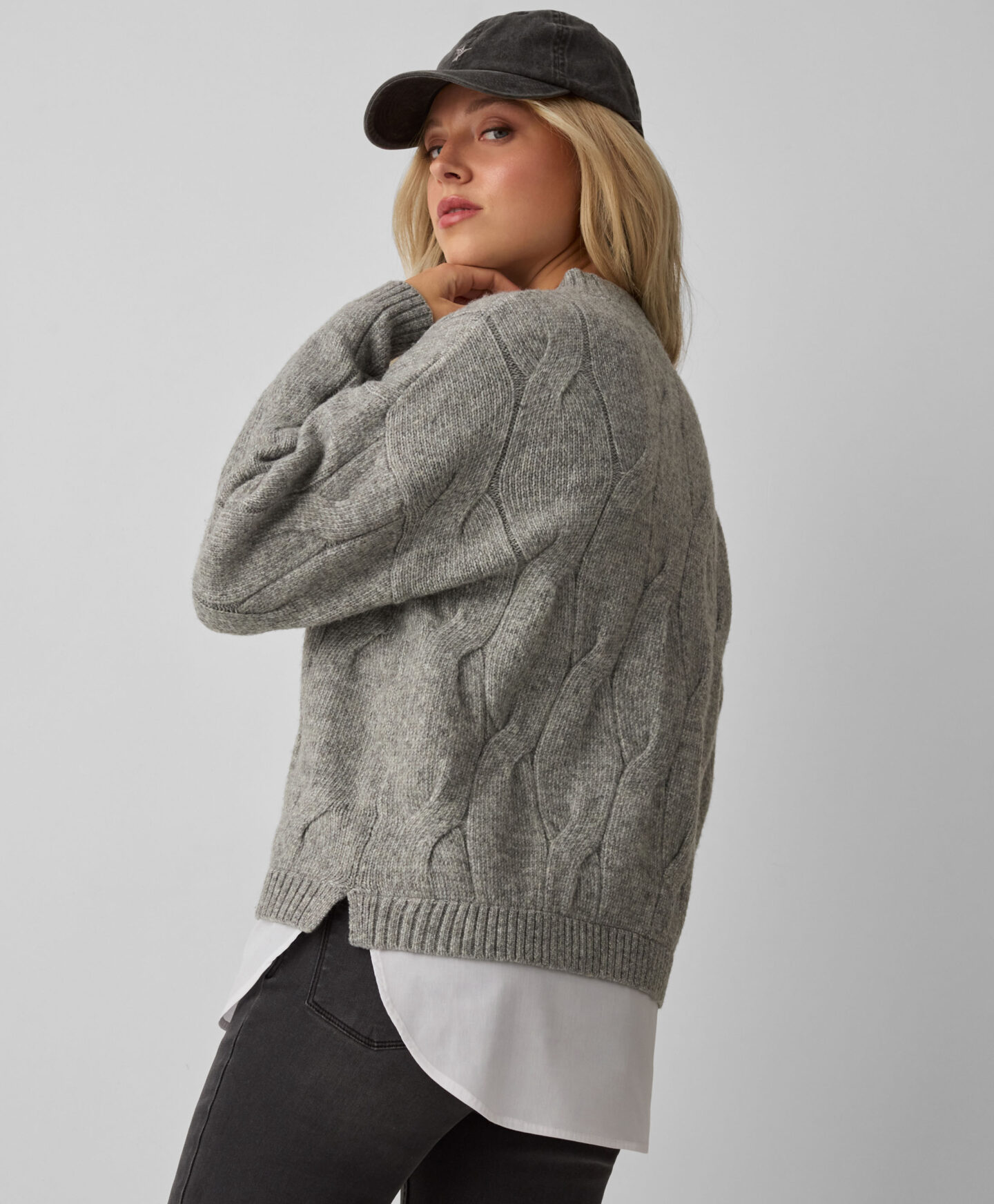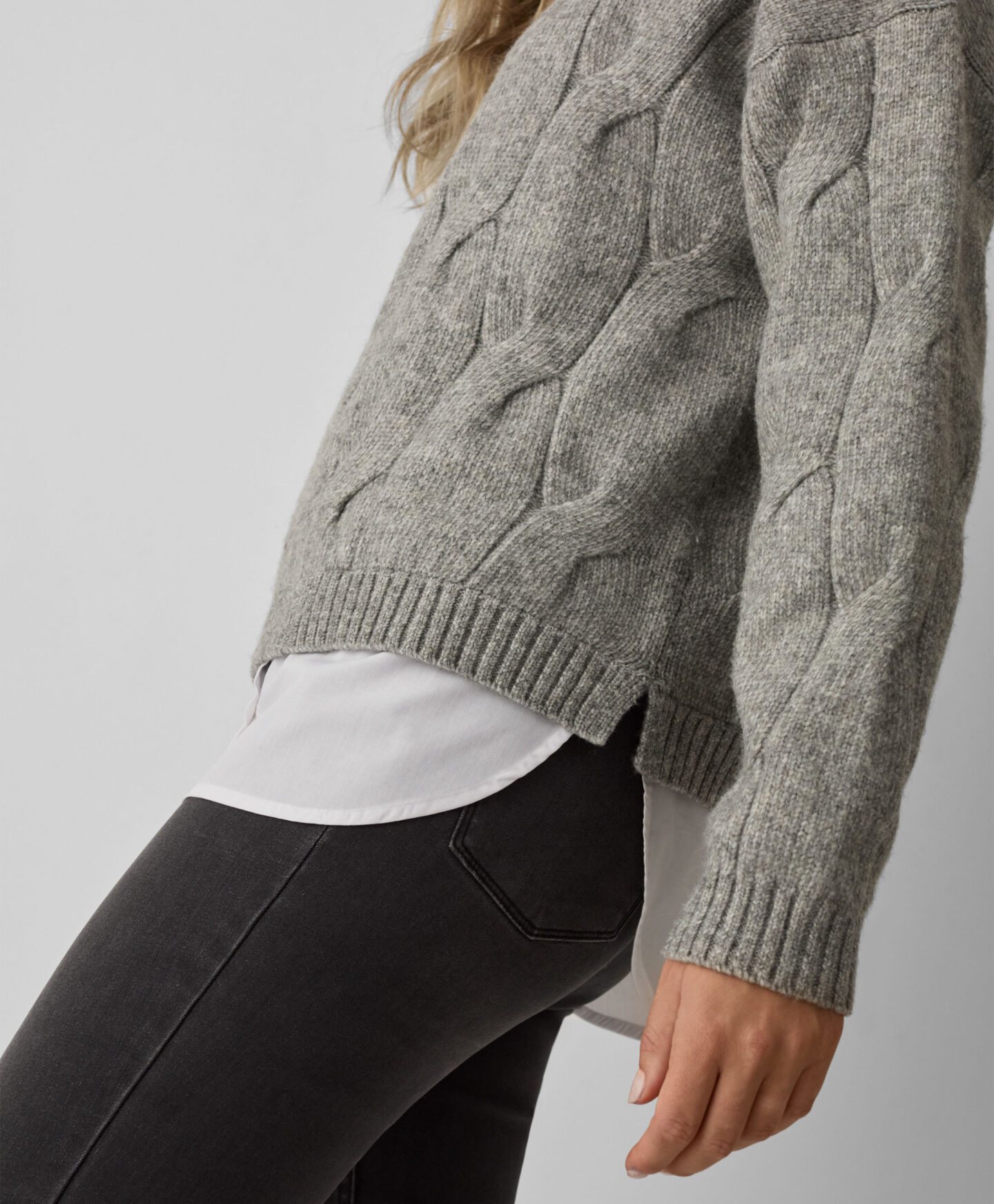 Siv pulover s srajco za ženske je namenjen vsem tistim, ki sledijo trendom. Progasta tkanina je sinonim za jesensko vzdušje, kombinacija z belo srajco pa je odlična izbira za številne priložnosti. Pulover lahko nosite v pisarni, na srečanju s prijateljico ali na jesenskem zmenku. Na izbiro sta dve barvi.