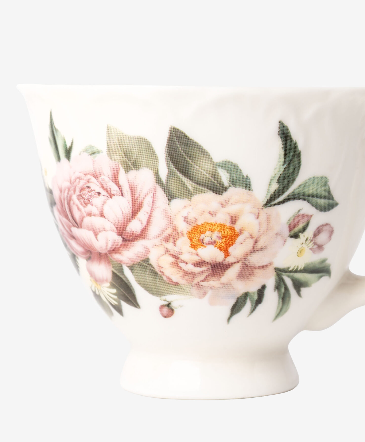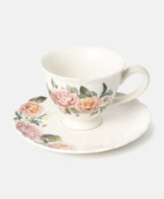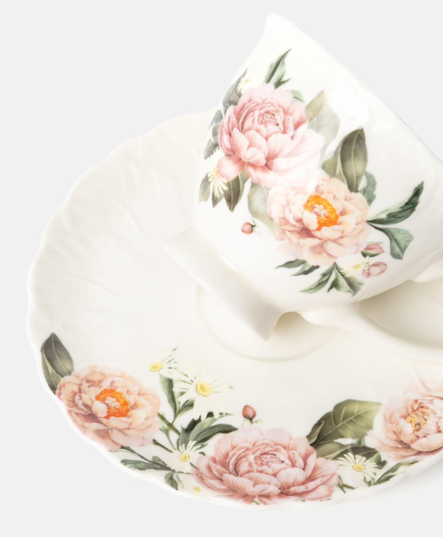 Skodelica s krožničkom iz porcelana s cvetličnim vzorcem je izdelana iz trpežnega porcelana New Bone China. Je odlična izbira tako za vsakodnevno rabo kot tudi za posebne priložnosti. Pomladni motiv bo vsakem trenutku z vašo najljubšo pijačo v roki dodal poseben čar. Skodelica je odlična za postrežbo aromatične kave, čaja z limono ali vroče čokolade. V naši ponudbi je na voljo še več ujemajočih izdelkov.