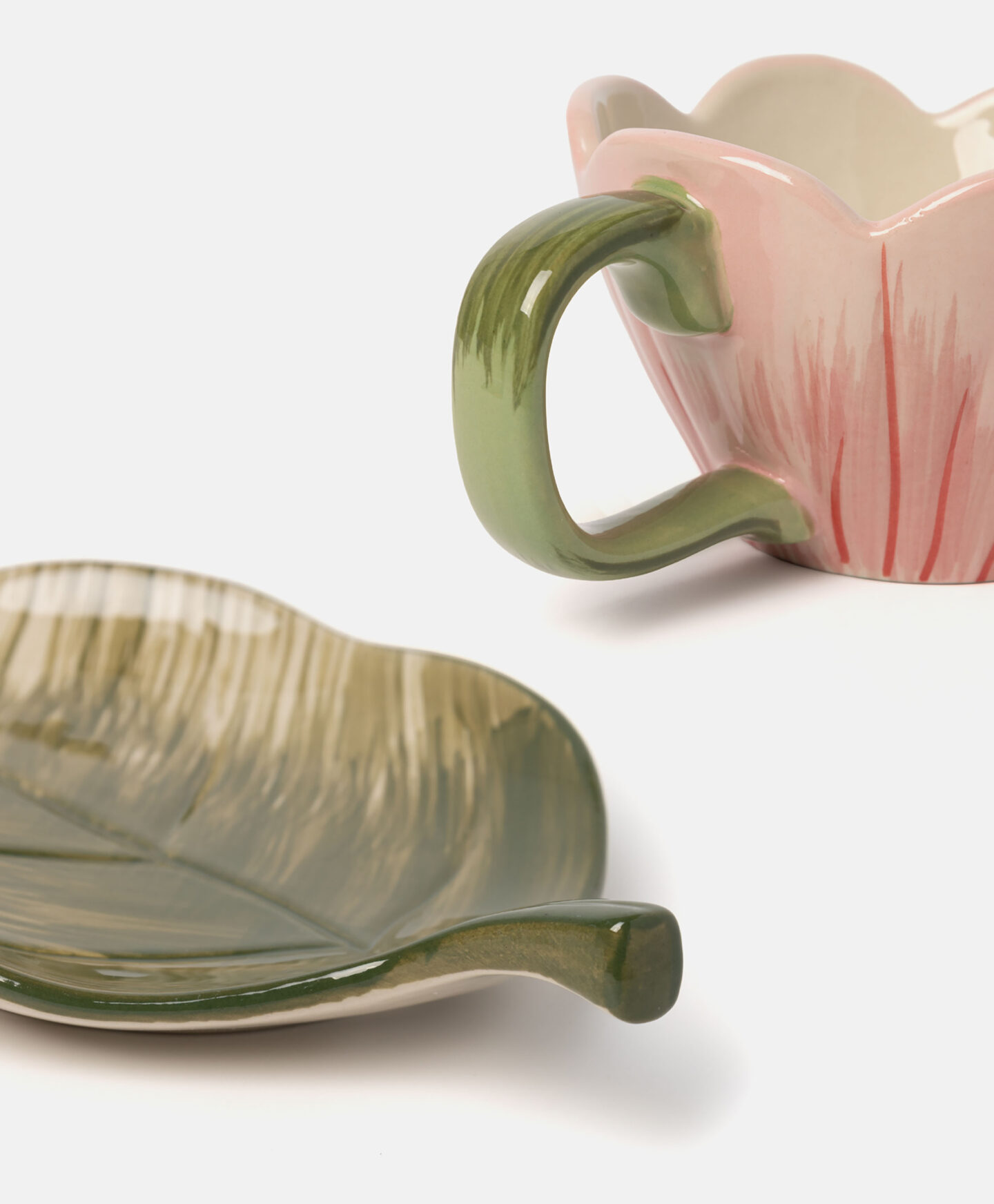 Skodelica v obliki rože s krožničkom v obliki lista vas bo očarala s svojo dovršeno zasnovo. Zaradi edinstvene oblike je skodelica odlično darilo za vse ljubitelje kave ali čaja. Primerna je tudi za vsakodnevno uporabo, saj bo v vsak trenutek vnesla kanček pravljičnosti. Naj v vašo kuhinjo pride pomlad!