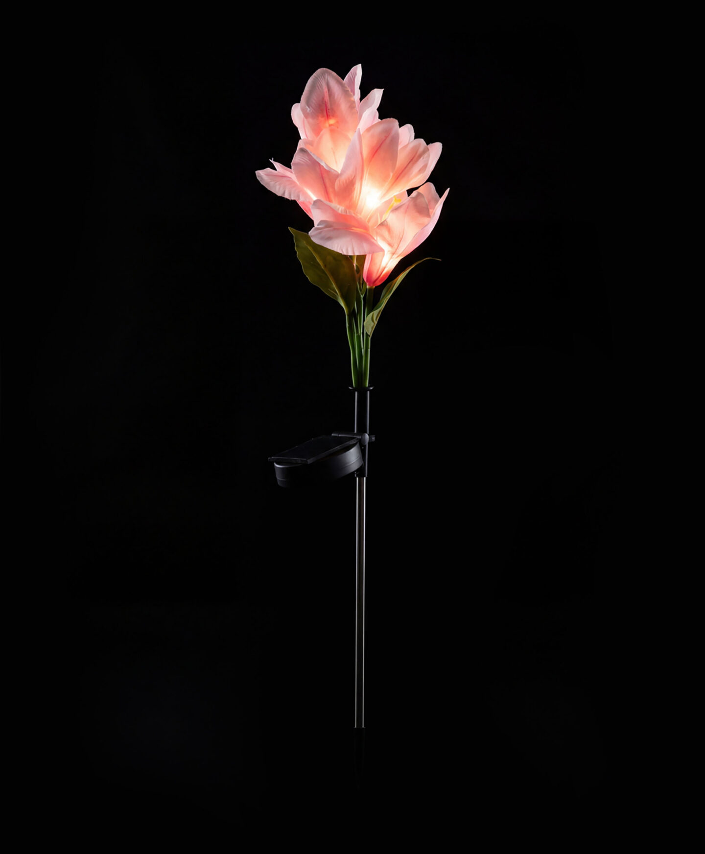 Solarna luč z rožo na palici je eleganten in trpežen zunanji okras. Krasi jo čudovit umeten cvet v živahnih barvah, ki ga vsak večer osvetli LED luč in ki na vrtu, terasi ali balkonu ustvari čarobno vzdušje. Svetilka se napaja na sončno energijo in zaradi vgrajene solarne celice deluje brez kablov in baterij. Količek preprosto zapičite v tla, kar omogoča enostavno namestitev v vaš najljubši kotiček vrta ali cvetlični lonec. Svetilka se samodejno vklopi ob mraku in izklopi ob zori, zato vam za nočno razsvetljavo ni treba posebej skrbeti.