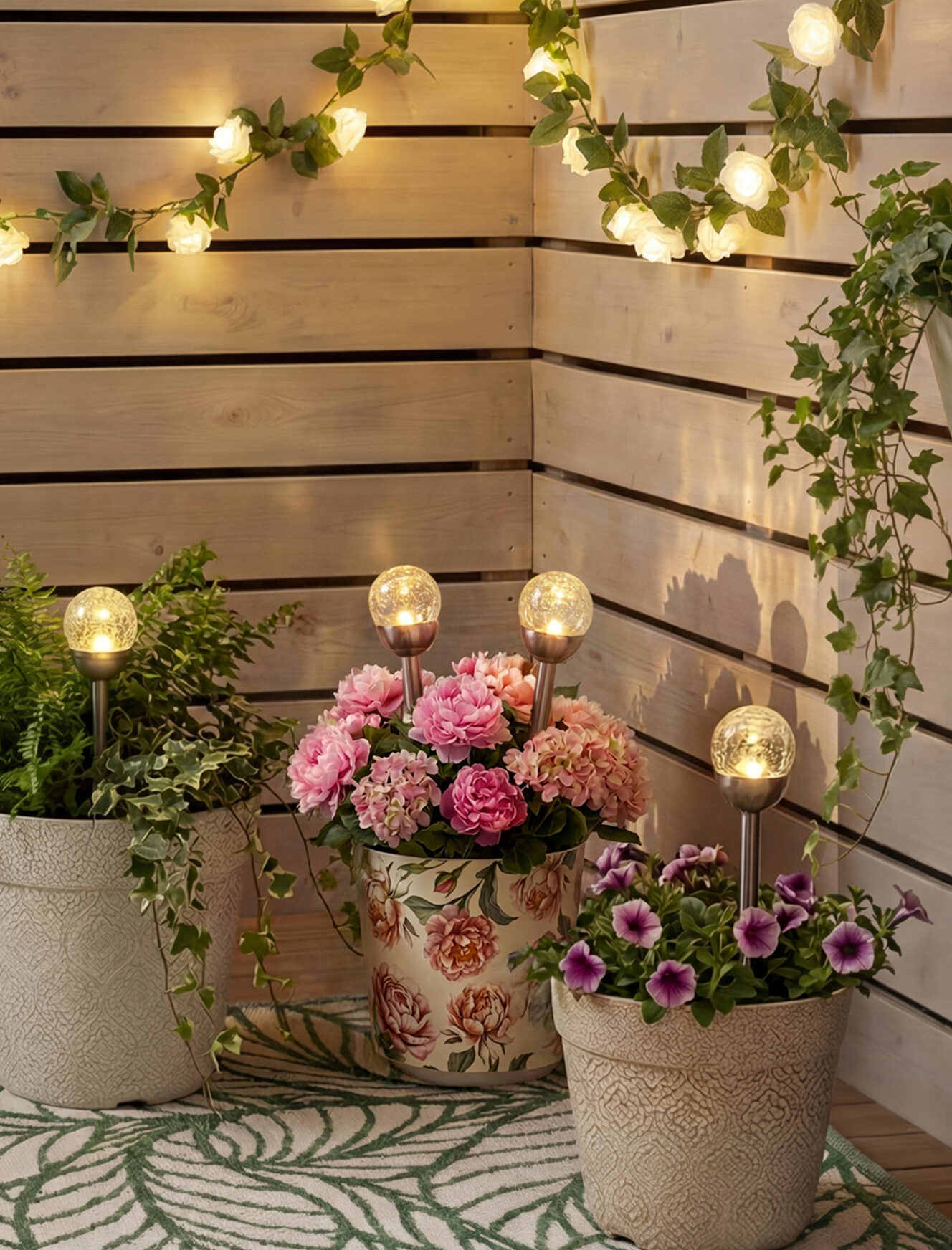 Solarna svetilka s posebnim učinkom počenega stekla je elegantna dekoracija, ki bo polepšala okolico vašega doma. Popolna je za na vrt, balkon ali teraso. Učinek počenega stekla razprši svetlobo na prav poseben način. Svetilka se napaja na sončno energijo in deluje brez kablov in baterij. Samodejno se vklopi ob mraku in izklopi ob zori, zato vam za nočno razsvetljavo ni treba posebej skrbeti. Svetilka je izdelana iz trpežnih materialov, ki so odporni na vremenske razmere, zato ni občutljiva na vlago, mraz ali UV žarke in zagotavlja dolgotrajno uporabo.