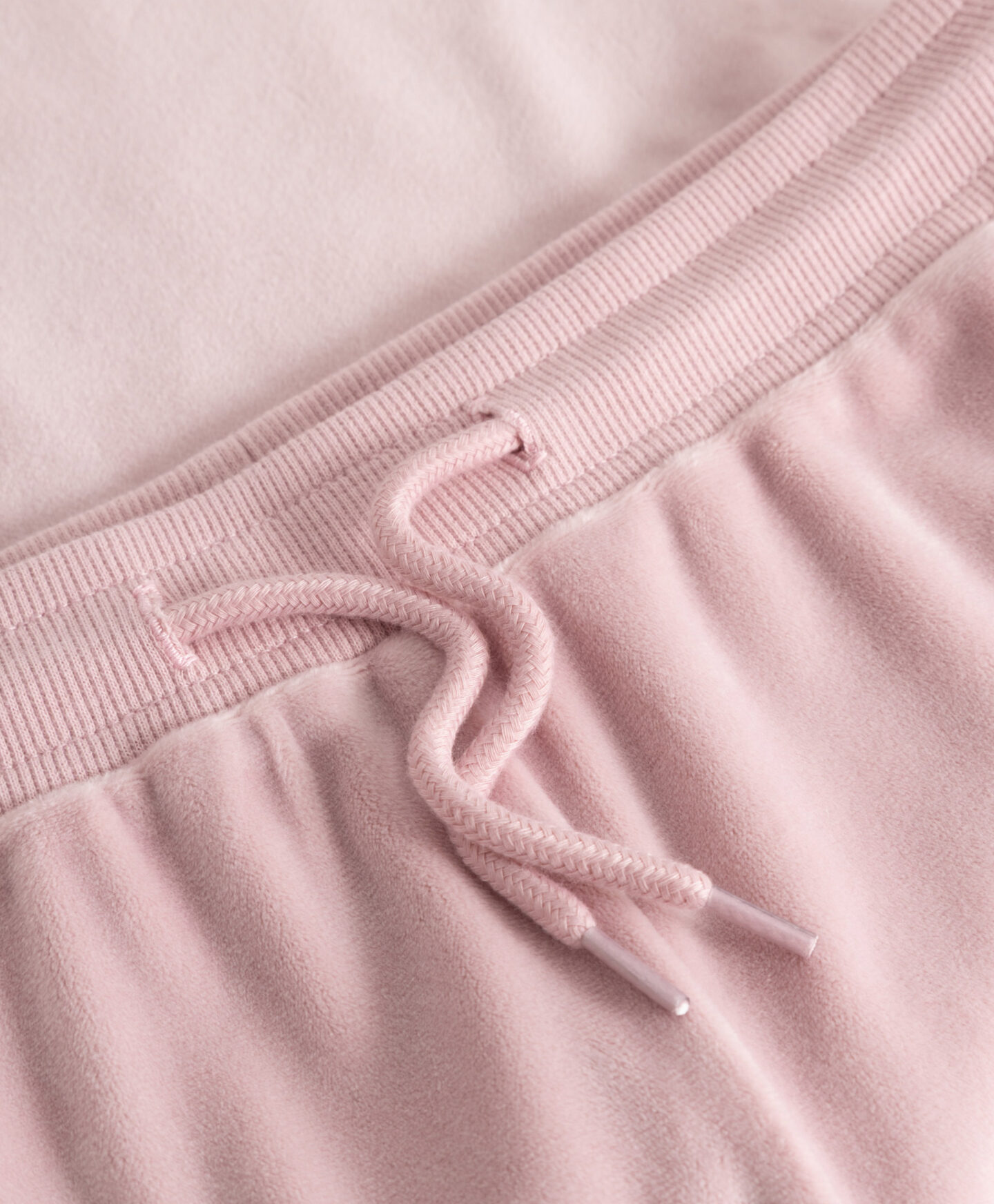 Spodnji del trenirke za deklice iz velurja so popolna kombinacija stila in udobja, kar bo cenila prav vsaka mala modna navdušenka. Elastičen pas zagotavlja popolno prileganje postavi, ne da bi pri tem omejeval gibanje. Popolna izbira za v vrtec, šolo ali na igrišče.