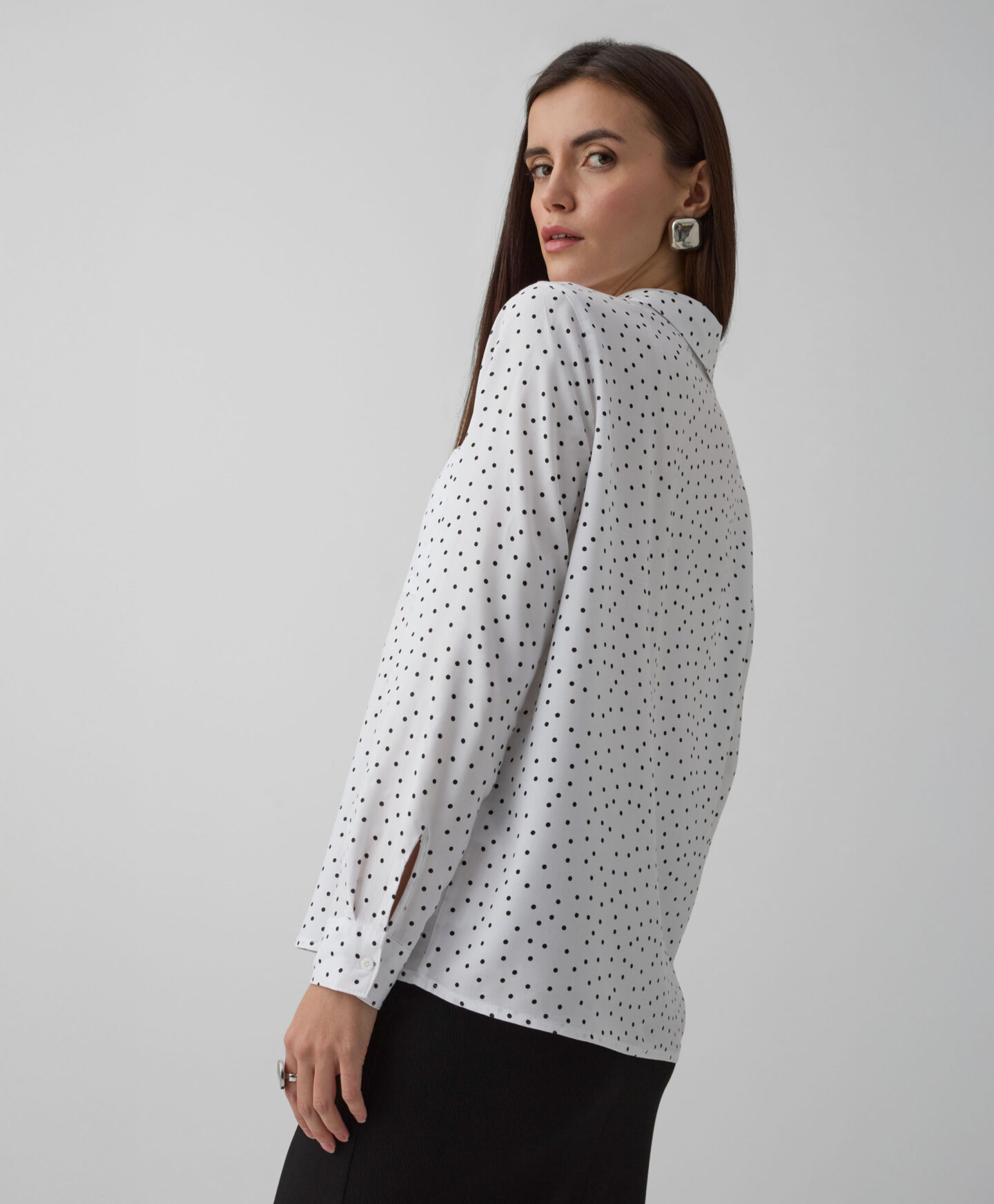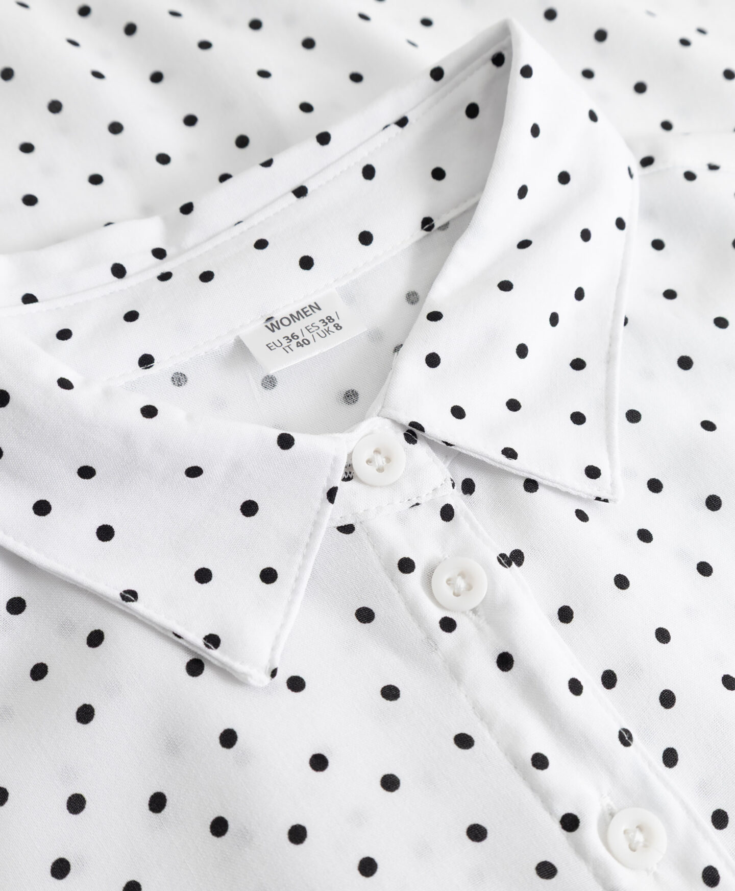 Srajca za ženske iz 100% viskoze s pikčastim vzorcem vas bo presenetila s svojo vsestranskostjo! Pikčasti vzorec nikoli ne gre iz mode in se lepo ujema z vsakim kosom garderobe, od hlač do kril. Lahek, zračen material zagotavlja popolno udobje pri nošenju. Srajca je kot nalašč za v pisarno, na zmenek ali praznično družinsko večerjo.