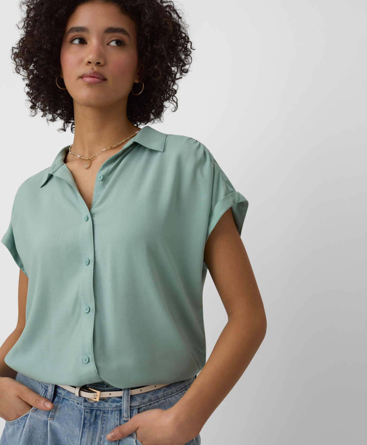 Srajca za ženske iz 100% viskoze s kratkimi rokavi je popolna za tople dni. Je zračna, lahka in udobna. Mehak material bo poskrbel za celodnevno udobje. Odlično bo videti s kratkimi hlačami, vašim najljubšim parom kavbojk ali elegantnimi hlačami.
