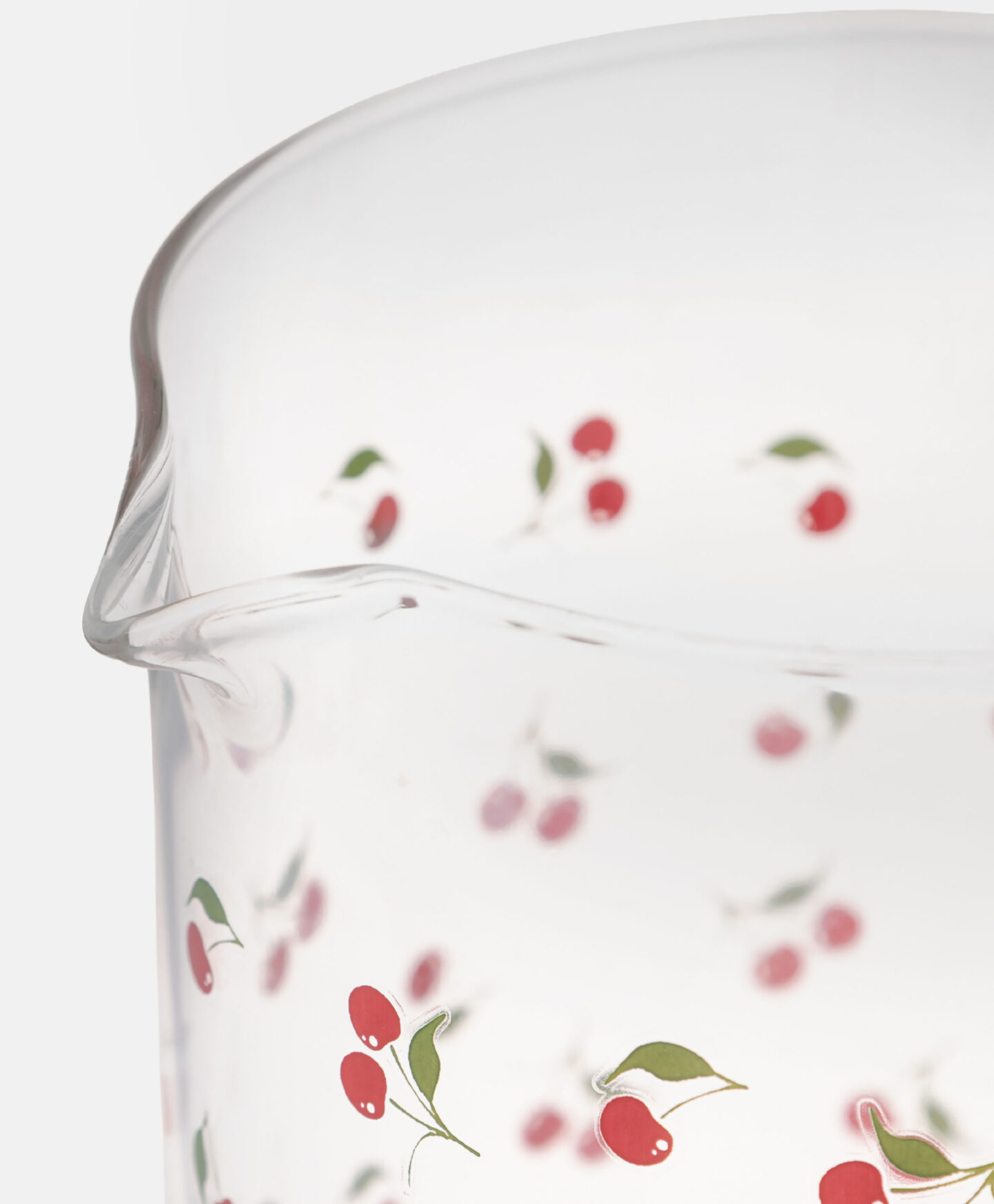 Stekleni vrč z motivom češenj bo v vašo kuhinjo prinesel poletje! Borosilikatno steklo je trpežno, odporno na visoke in nizke temperature ter enostavno za čiščenje. V vrču lahko postrežete osvežilno limonado, ledeni čaj ali klasično vodo z meto, ob tem pa uživajte v njegovem estetskem videzu. Prostornina 1,7 litra je popolna za postrežbo pijače med skupnimi obroki.