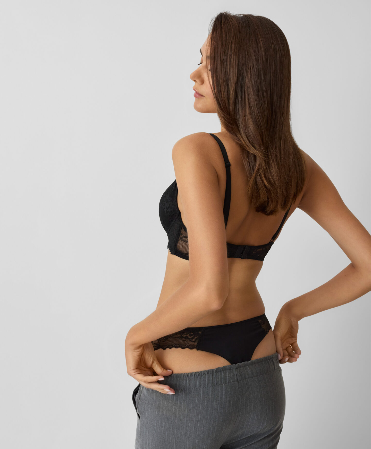 Tangice s čipko so popolne za pod oprijeta oblačila, saj so pod njimi popolnoma nevidne. Detajli iz čipke jim dajo nežen značaj. Preproste, elegantne in izjemno ženstvene.