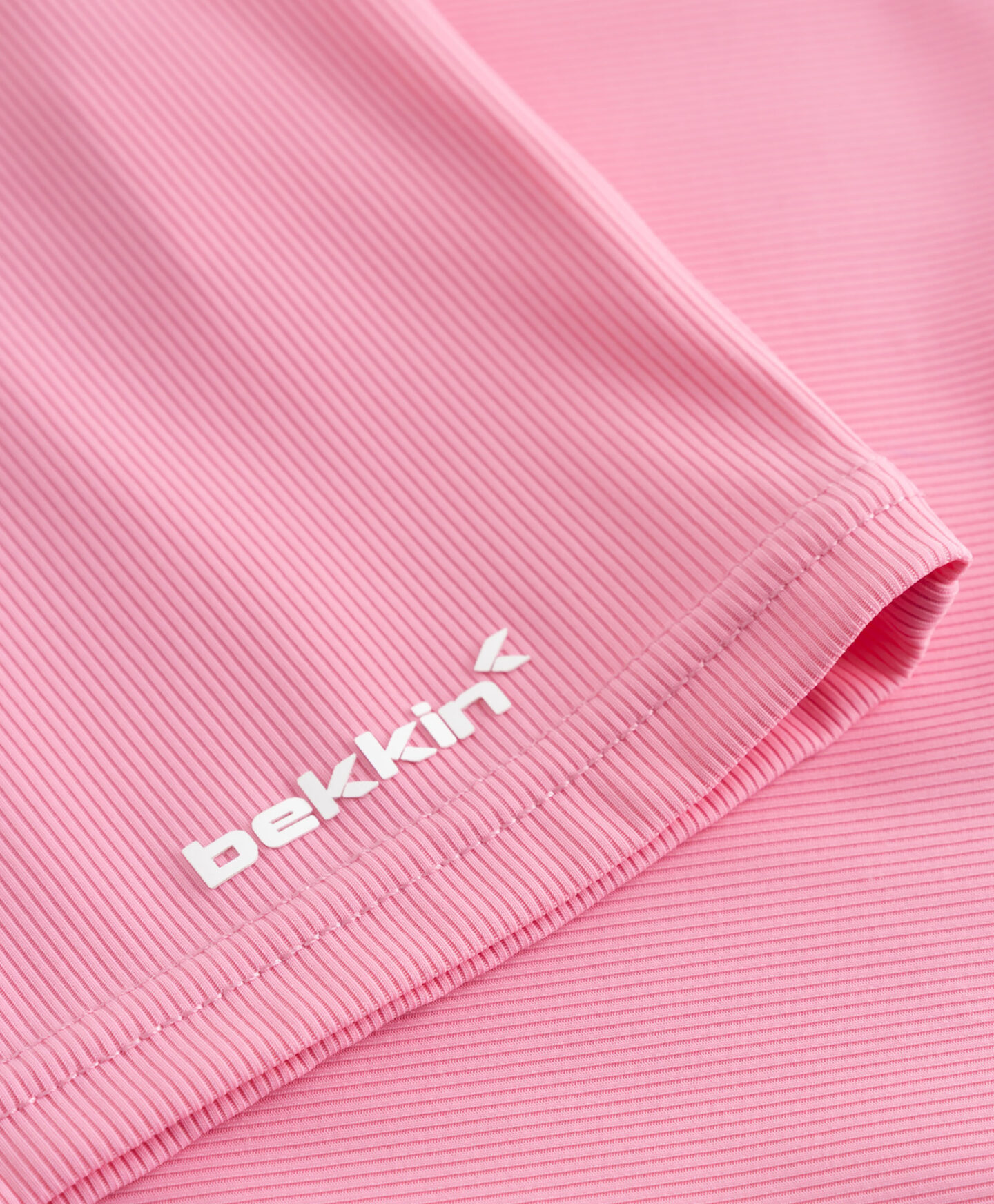 Top za deklice Bekkin je bil ustvarjen za intenzivno vadbo. Lahko ga nosite samostojno ali pod drugimi oblačili. Preprost, vsestranski dizajn brez rokavov omogoča popolno svobodo gibanja in zračnost. Majico lahko kombinirate z različnimi kosi – od kratkih hlač in kril do kavbojk – in tako ustvarite različne vsakodnevne in športne outfite. Na voljo so tudi ujemajoče kolesarske hlače.