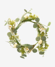 Velikonočni venček z belimi cvetlicami je popoln okras za vrata, lepo bo dopolnil tudi dnevno sobo ali pisarno, služi pa lahko tudi kot dekorativni element na velikonočnih praznovanjih. Uporabite ga lahko tudi za spomladanske aranžmaje z dišečimi svečami in dizajnersko vazo. Na izbiro v več različicah.