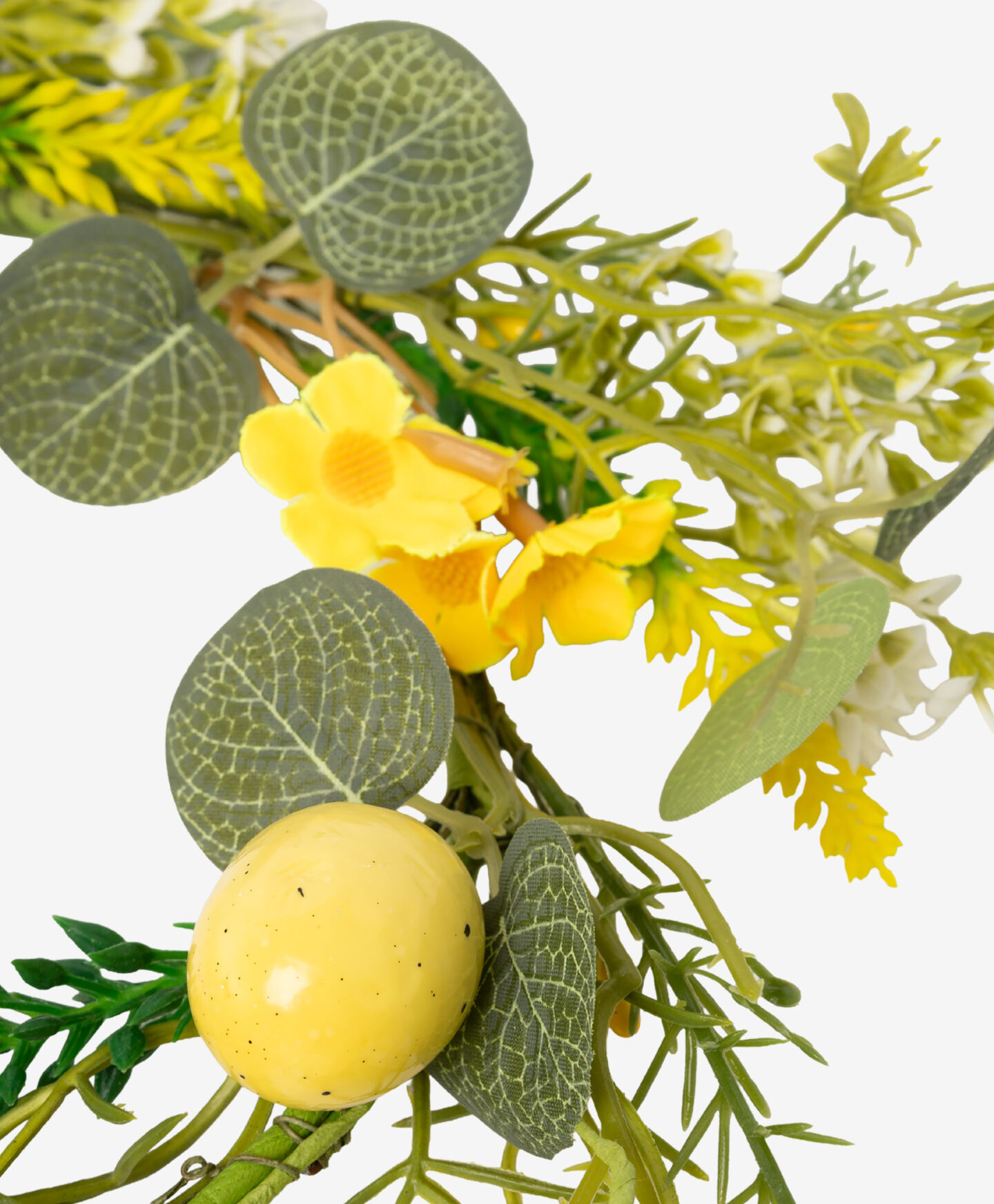 Velikonočni venček z rumenimi cvetlicami je popoln okras za vrata, lepo bo dopolnil tudi dnevno sobo ali pisarno, služi pa lahko tudi kot dekorativni element na velikonočnih praznovanjih. Uporabite ga lahko tudi za spomladanske aranžmaje z dišečimi svečami in dizajnersko vazo. Na izbiro v več različicah.