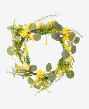 Velikonočni venček z rumenimi cvetlicami je popoln okras za vrata, lepo bo dopolnil tudi dnevno sobo ali pisarno, služi pa lahko tudi kot dekorativni element na velikonočnih praznovanjih. Uporabite ga lahko tudi za spomladanske aranžmaje z dišečimi svečami in dizajnersko vazo. Na izbiro v več različicah.