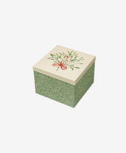 Zeleno papirnato škatlo krasi praznični vzorec. Škatla je praktična in estetska, zato bo služila kot čudovito pakiranje za darila, namenjena vašim najdražjim. Darila bodo v njej videti naravnost edinstveno, obdarovanca pa bodo razveselila že na prvi pogled.