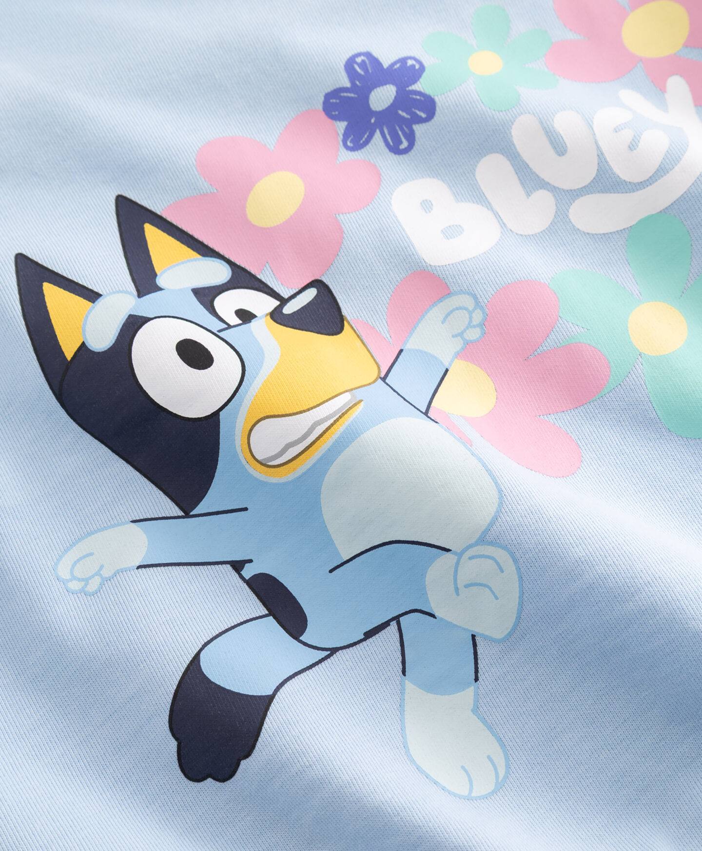 Zgornji del trenirke za deklice Bluey z bombažem se ponaša s čudovitim modrim odtenkom. Velik potisk na sprednji strani z najljubšim risanim junakom takoj pade v oči in naredi vtis. Pulover je udobna izbira za v vrtec, za na igrišče ali za sproščanje doma. V ponudbi je na voljo tudi ujemajoč spodnji del trenirke.