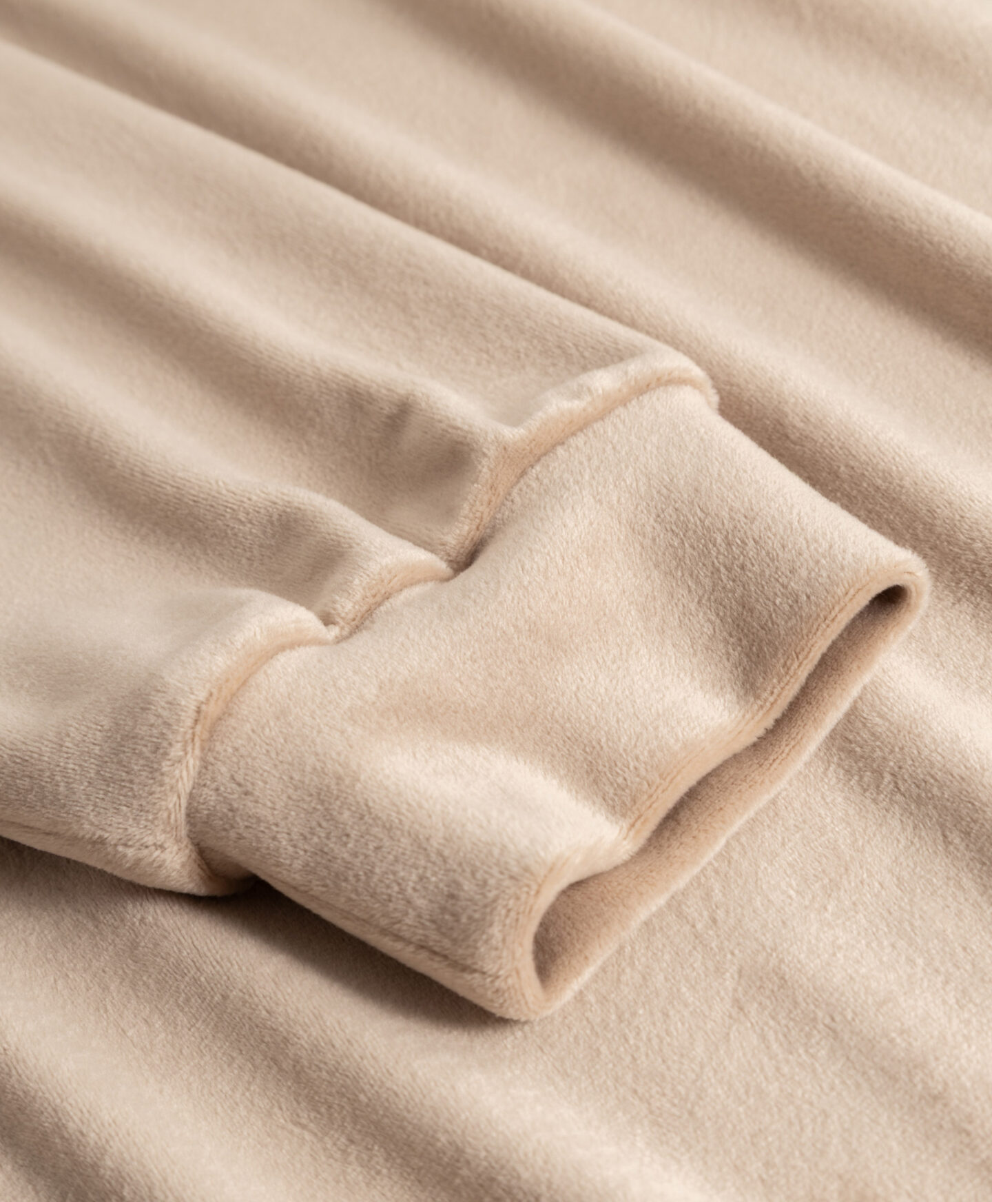 Zgornji del trenirke za deklice iz velurja je sinonim za sodoben stil in udobje. Udoben kroj omogoča popolno svobodo gibanja, material pa je neverjetno mehek na otip. Karamelna barva je hit te sezone in se odlično ujema tako s klasično belo kot tudi z drznejšimi vzorci. Poleg tega se žamet ne guba in ohranja sijaj tudi po več urah igranja.