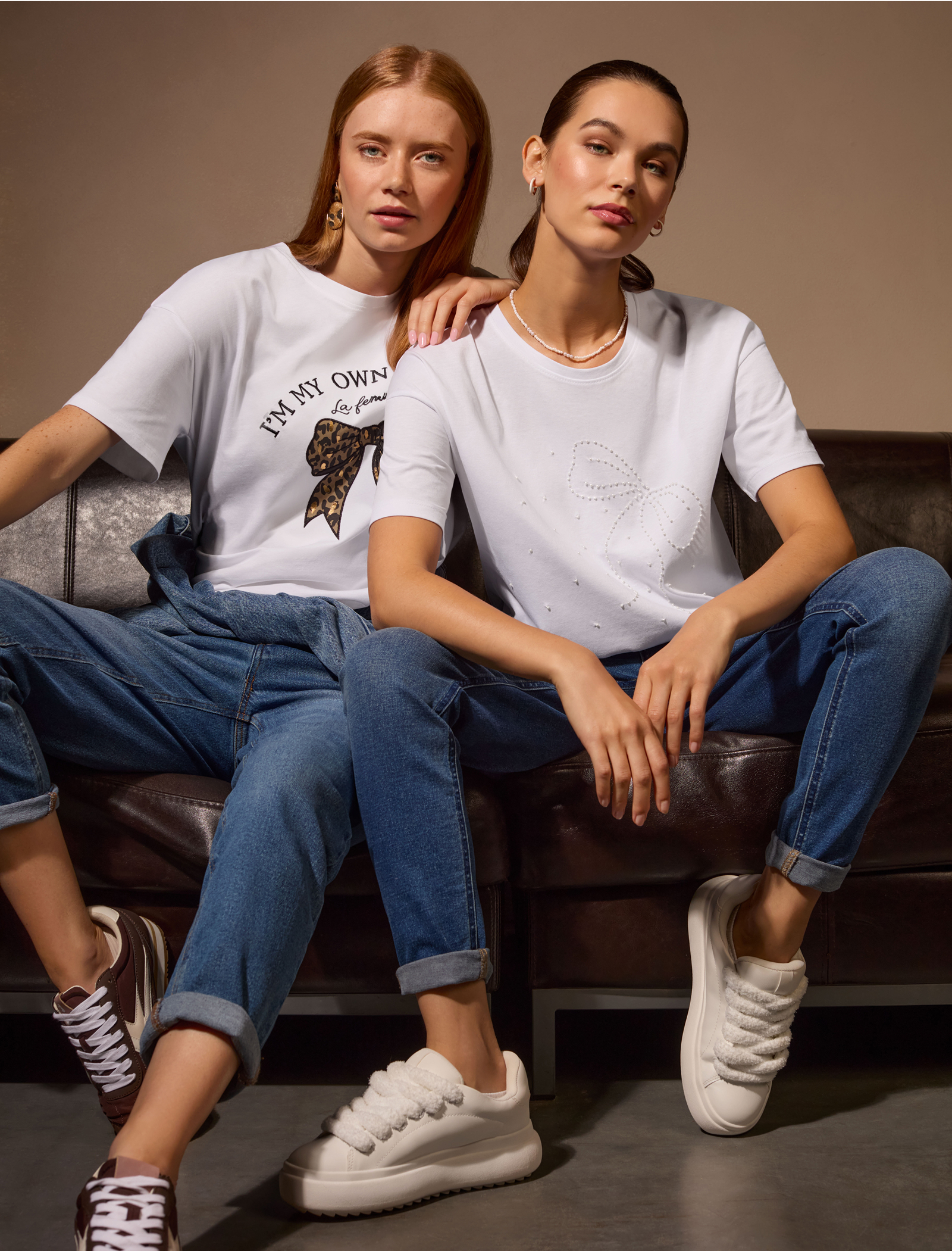 V kolekciji je opazenpovratek k estetiki devetdesetih in ni le poklon nostalgiji, temveč predvsemzavestno sklicevanje na obdobje, ki ga je zaznamovala izjemno svobodna moda. Ta trend se kaže v ohlapnih majicah, ki se dobro podajo tako k vsakdanjim videzom kot k elegantnim kosom garderobe. Hlače z visokim pasom in širokimi hlačnicami ne spominjajo le na tisto obdobje, temveč so tudi popolnoma v trendu danes, udobne in vsestranske. Kratki topi, še en značilen element devetdesetih let, so bili osveženi in prilagojeni sodobnim potrebam ter ponujajo različne možnosti kombiniranja.