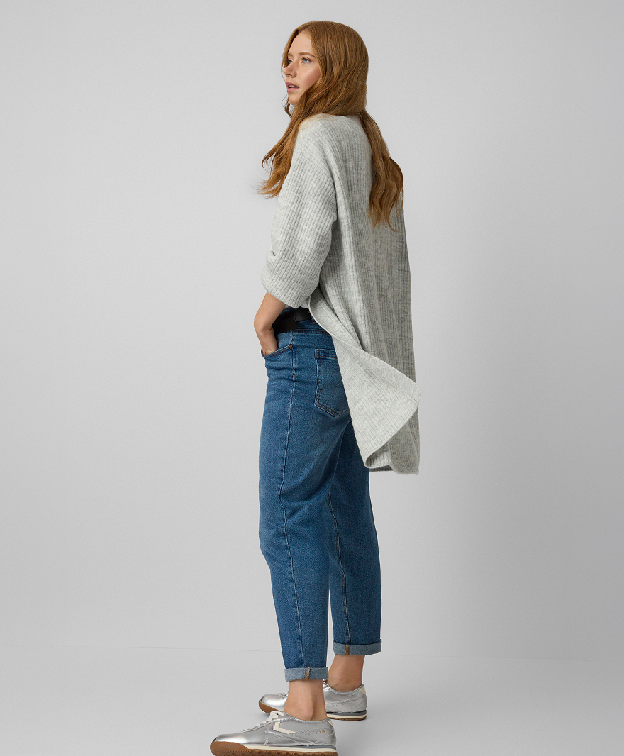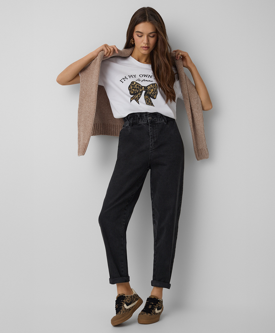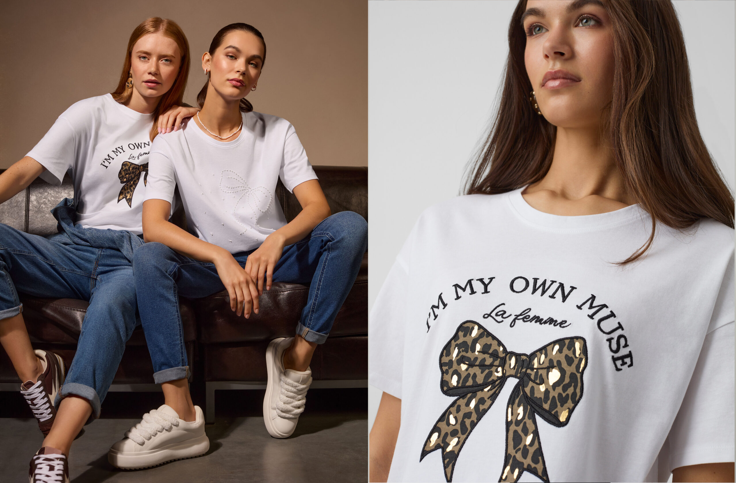 V kolekciji je opazenpovratek k estetiki devetdesetih in ni le poklon nostalgiji, temveč predvsemzavestno sklicevanje na obdobje, ki ga je zaznamovala izjemno svobodna moda. Ta trend se kaže v ohlapnih majicah, ki se dobro podajo tako k vsakdanjim videzom kot k elegantnim kosom garderobe. Hlače z visokim pasom in širokimi hlačnicami ne spominjajo le na tisto obdobje, temveč so tudi popolnoma v trendu danes, udobne in vsestranske. Kratki topi, še en značilen element devetdesetih let, so bili osveženi in prilagojeni sodobnim potrebam ter ponujajo različne možnosti kombiniranja.
