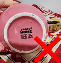 | Zaradi nenamerne napake so bile nekatere skodelice napačno označene s simboloma, ki nakazujeta, da so primerne za uporabo v mikrovalovni pečici in za pomivanje v pomivalnem stroju.